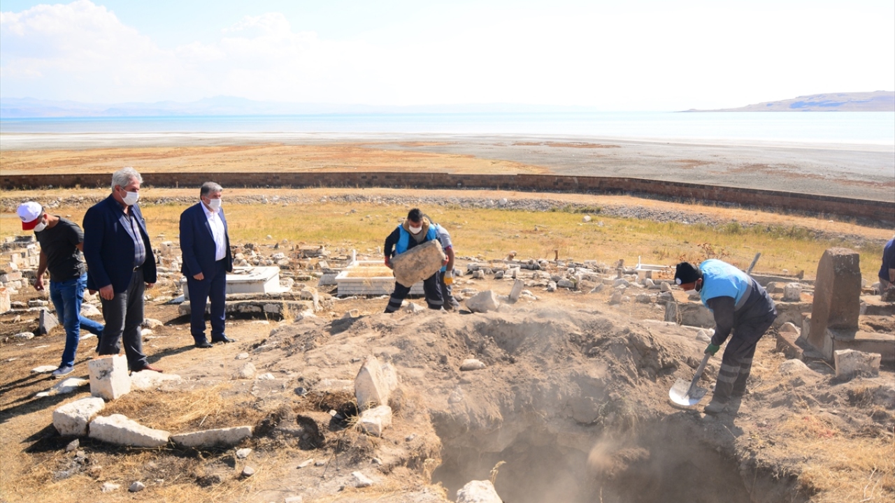 Tarihi mezarlığın bulunduğu alana giden Belediye ekipleri, Van Müze Müdürlüğü görevlileri gözetiminde açılan çukurları kapattı, çevre temizliği yaptı.