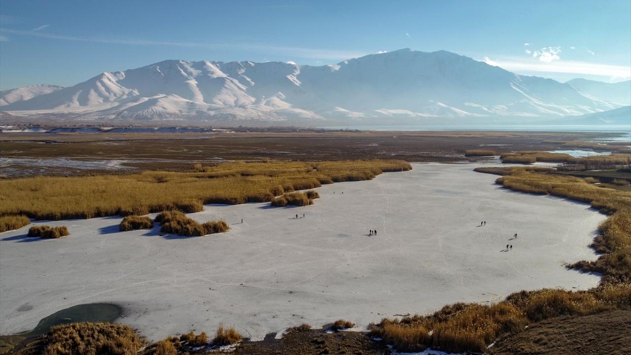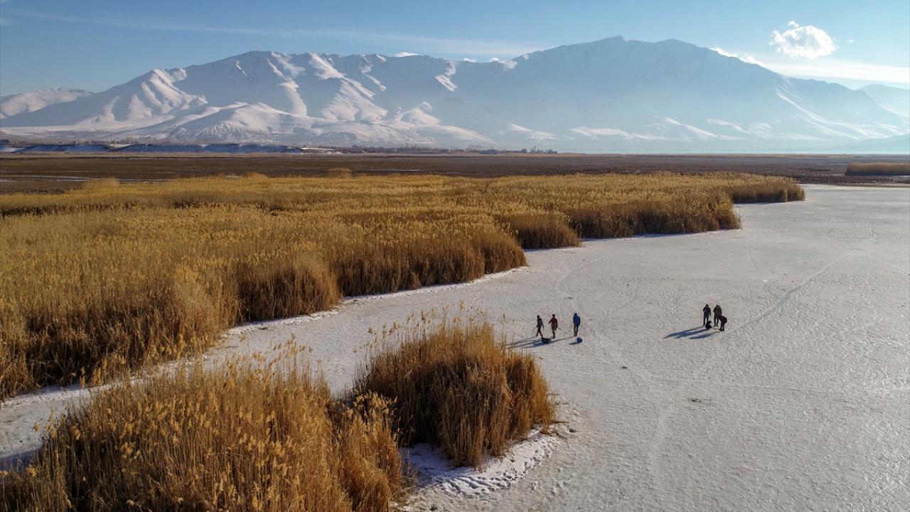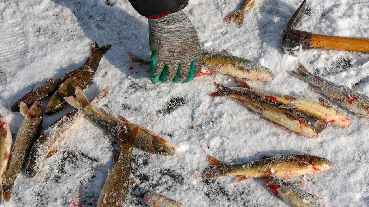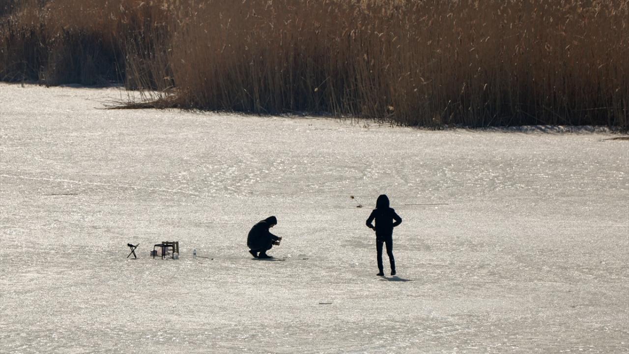 Bölgeye gelen fotoğraf tutkunları bölgenin güzelliklerini fotoğraf karelerine yansıtırken, balıkçılar da buz tabakasını baltalarla kırarak balık avladı.