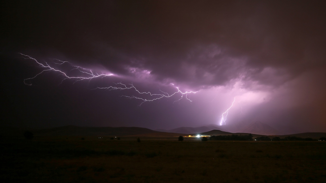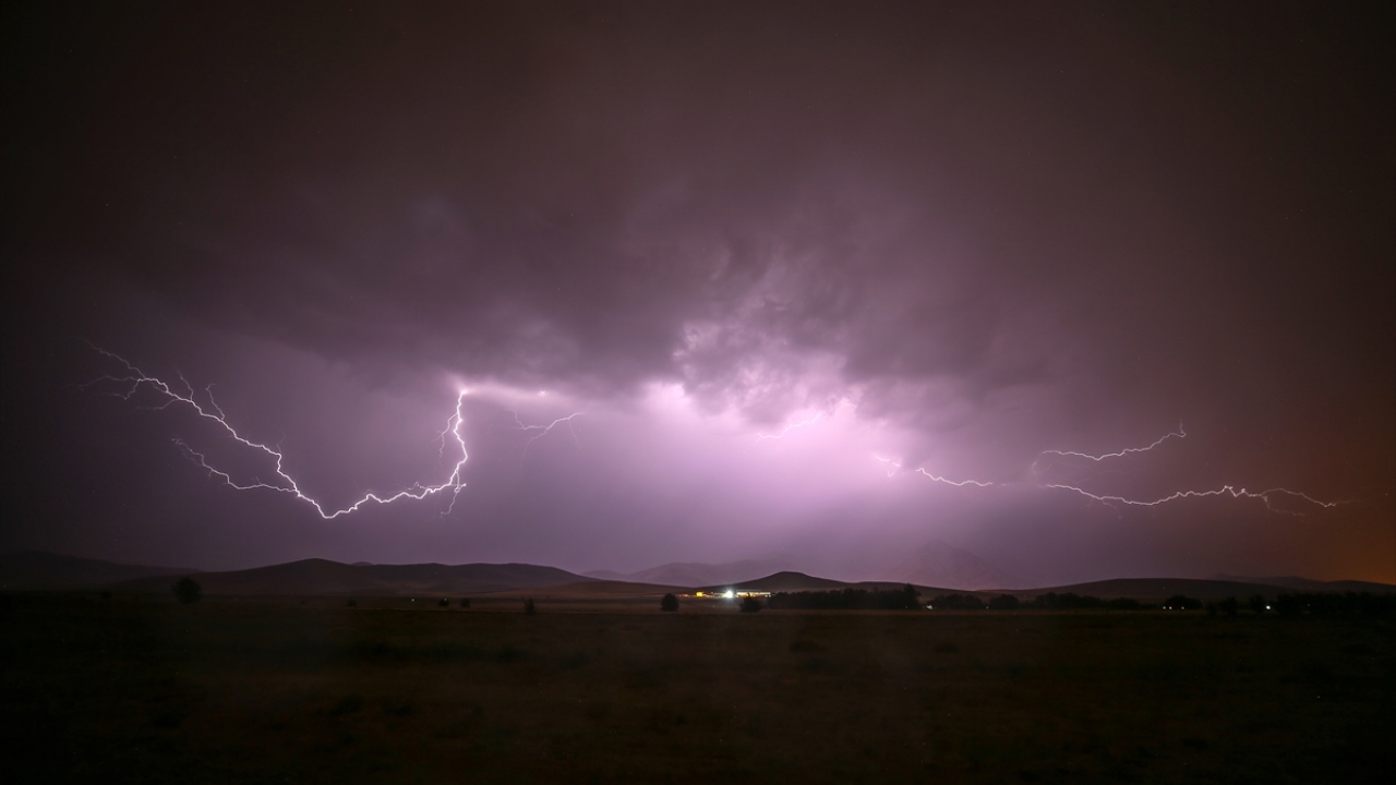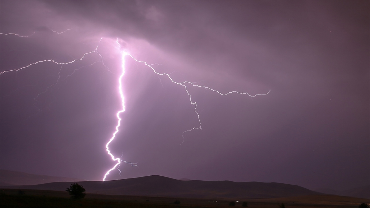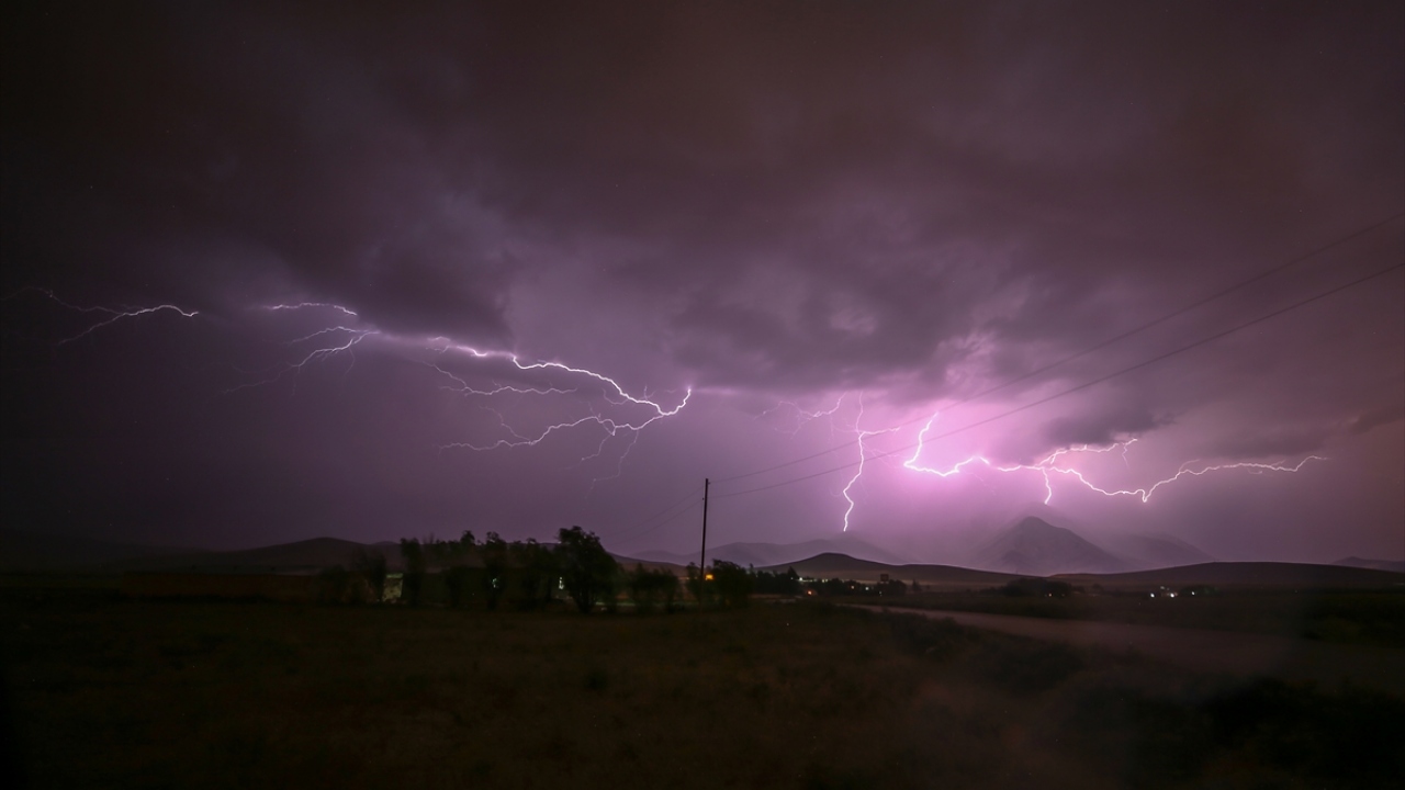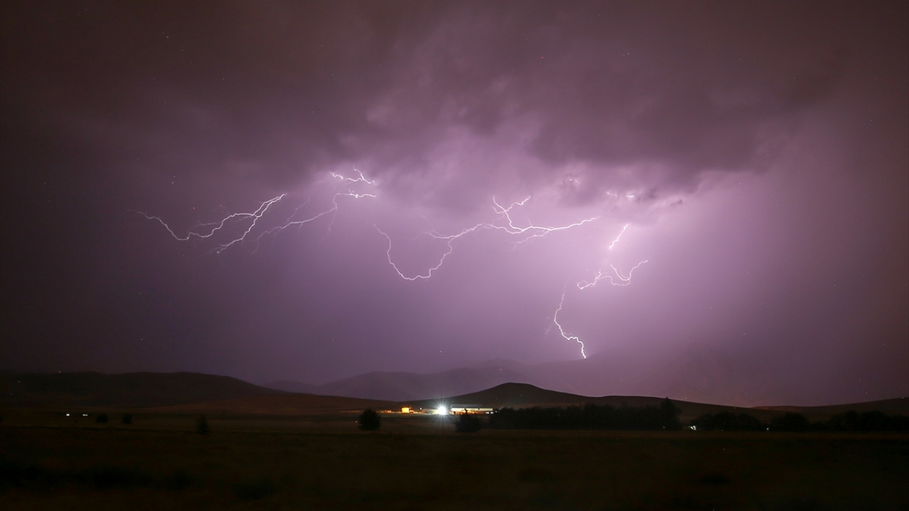 Van'da etkili olan yağmurla birlikte çakan şimşekler ve düşen yıldırımlar gecenin karanlığını aydınlattı.