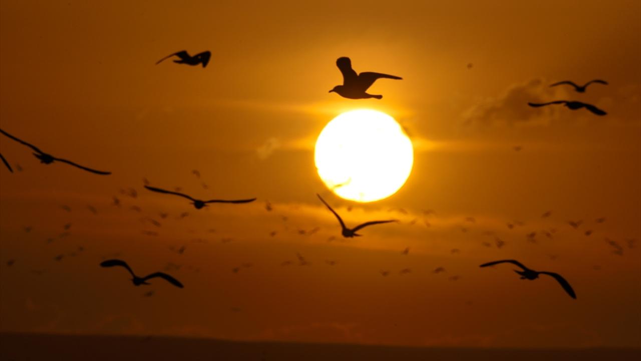 Van'ın Muradiye ilçesinde Van Gölü semalarında gün batımı sırasında gökyüzünde oluşan kızıllık, güzel görüntü oluşturdu.