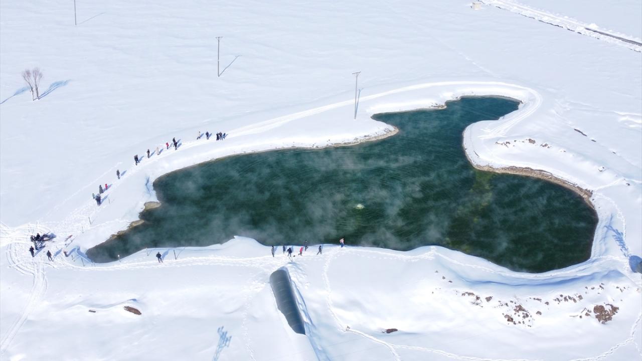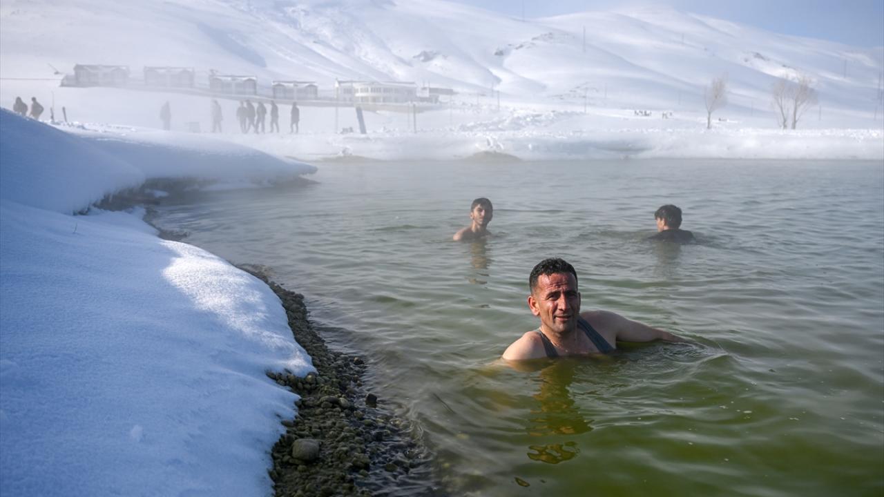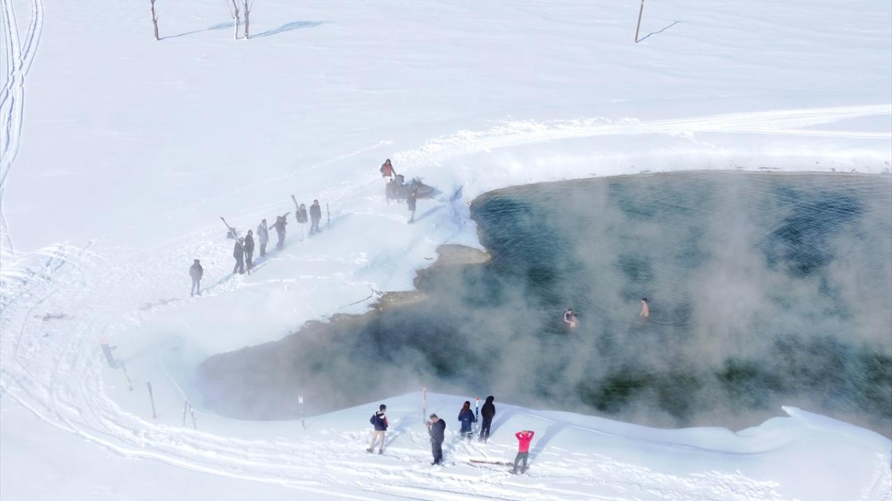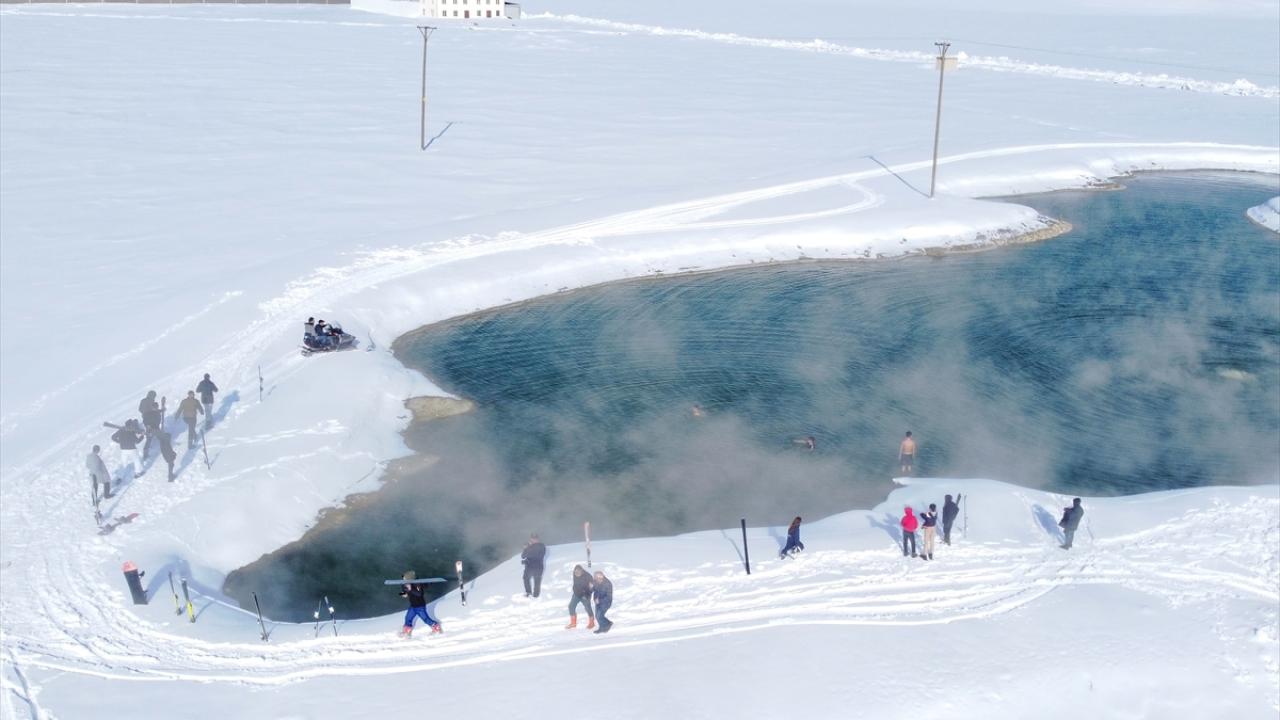 Hava sıcaklığının çoğu zaman sıfırın altında seyrettiğini anlatan Bedircan, "Hava soğuk olsa bile termal su çok sıcak. Keyifli oluyor. Suyun içindeyken dışarıdaki soğuğu hissetmiyoruz." dedi.