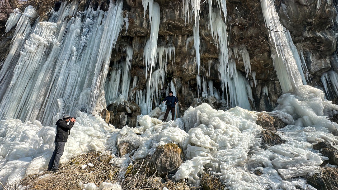 Kanyonu gezen fotoğrafçılar, dev buz sarkıtlarının olduğu bölgeyi fotoğrafladı.