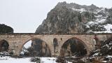 Samsun'da tarihi Kurt Köprü'nün karla buluşması görüntülendi