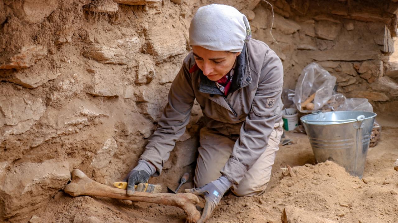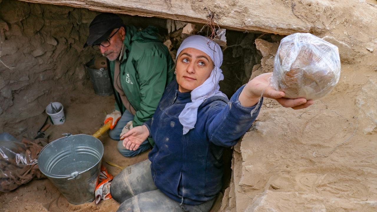 "Mezarların 3`ü dromoslu oda, 4`ü de örme mezar şeklinde. Çok sayıda gömünün olduğunu, ölüye çanak veya çömlek içinde yemek bırakıldığını, süs eşyalarıyla gömüldüklerini tespit ettik. Mezarlarda aynı zamanda insan iskeletleriyle karışmış köpek gömüsü gördük. Mezar girişlerinde küçükbaş hayvan iskeletlerine rastlamamız akla adak sunma geleneğini getiriyor. Alandaki çalışmalarımız devam edecek."