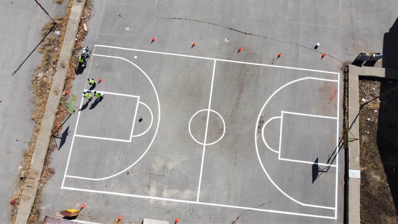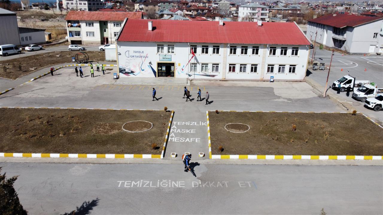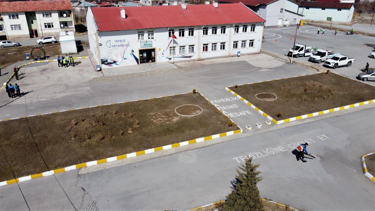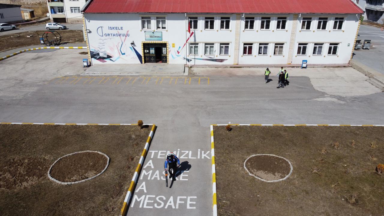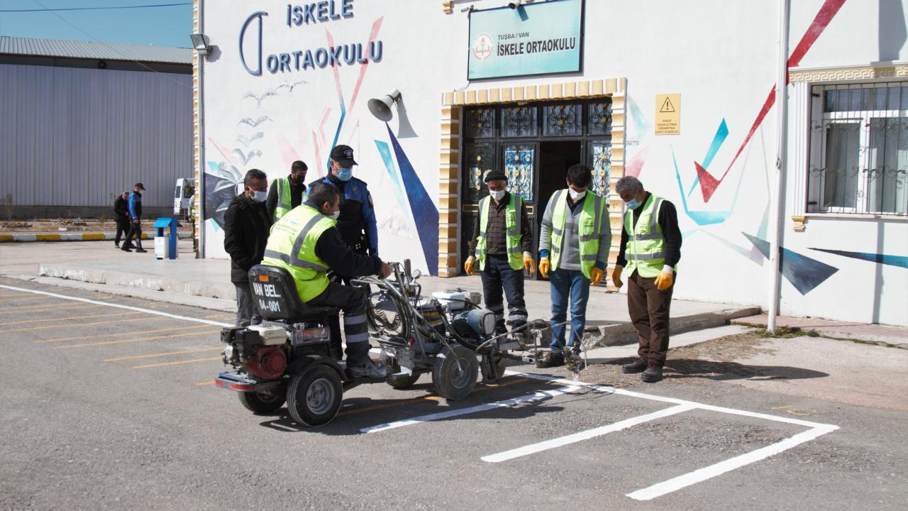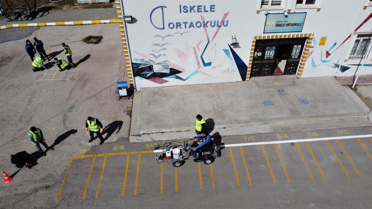 Van'daki bazı okulların bahçelerine, 2 Mart'ta başlaması planlanan yüz yüze eğitim öncesinde sosyal mesafe ve oyun çizgileri çizildi.