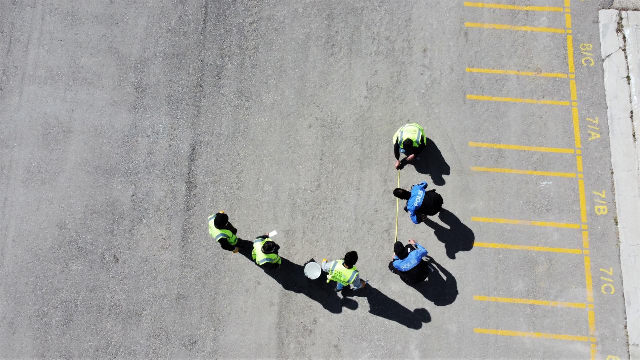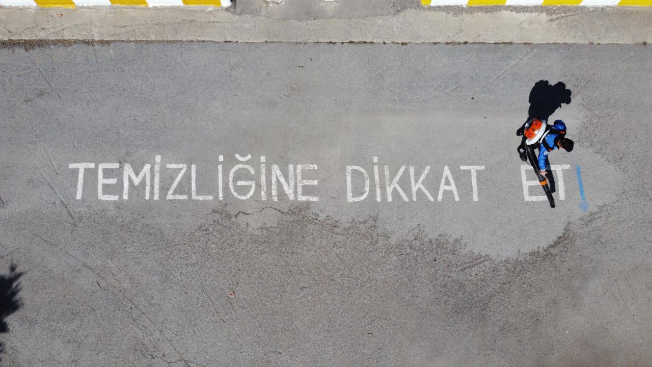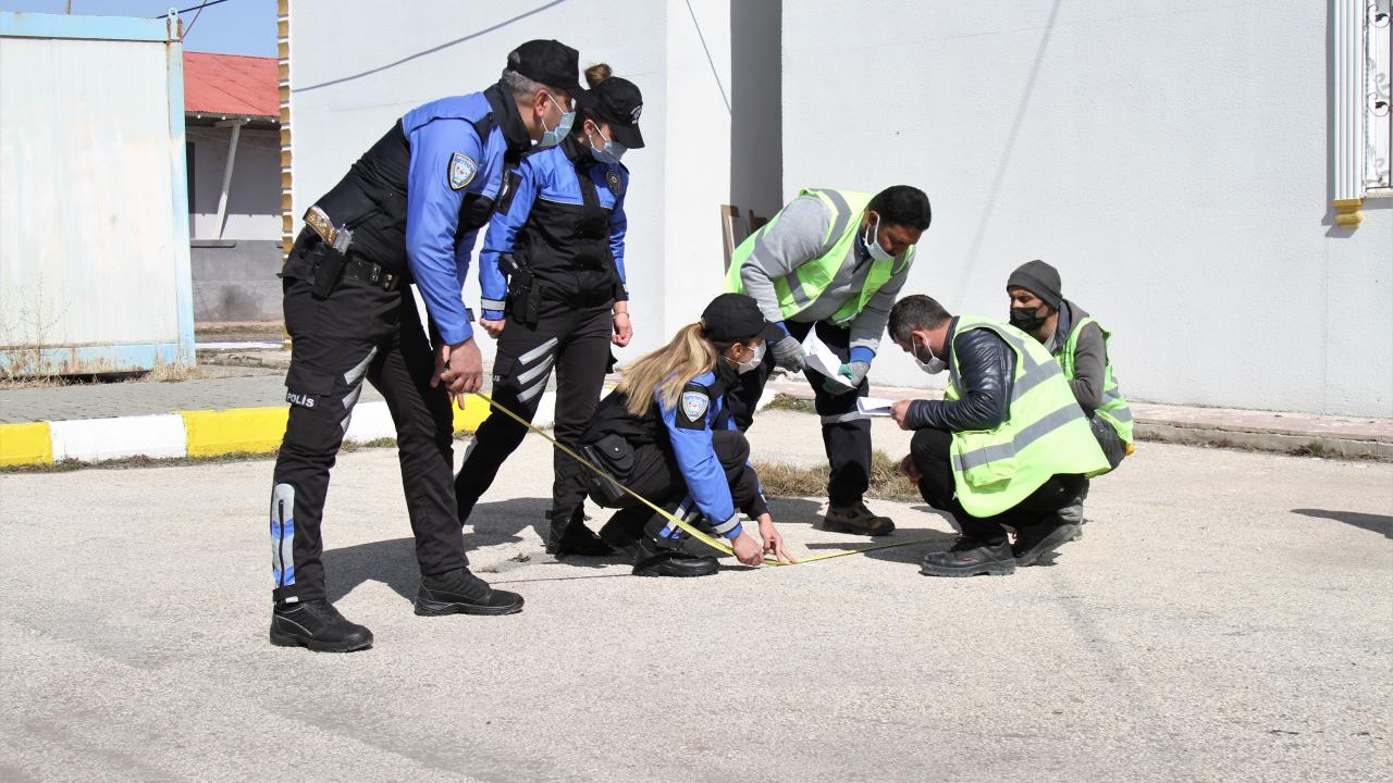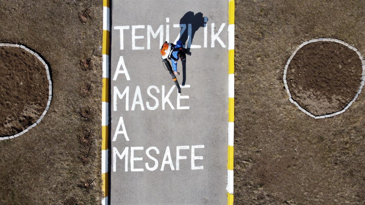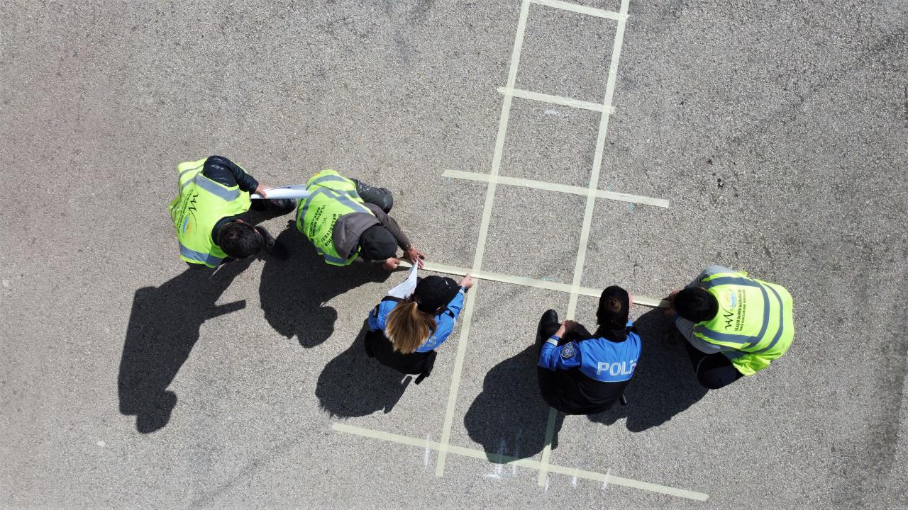 Van'da polisler okul bahçelerine sosyal mesafe uyarı işaretleri çizdi