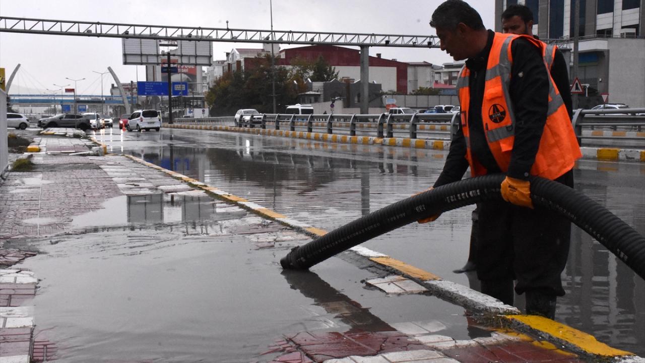 Yağış nedeniyle kent merkezindeki cadde ve sokaklarda su birikintileri oluştu, sürücüler ilerlemekte güçlük yaşadı.