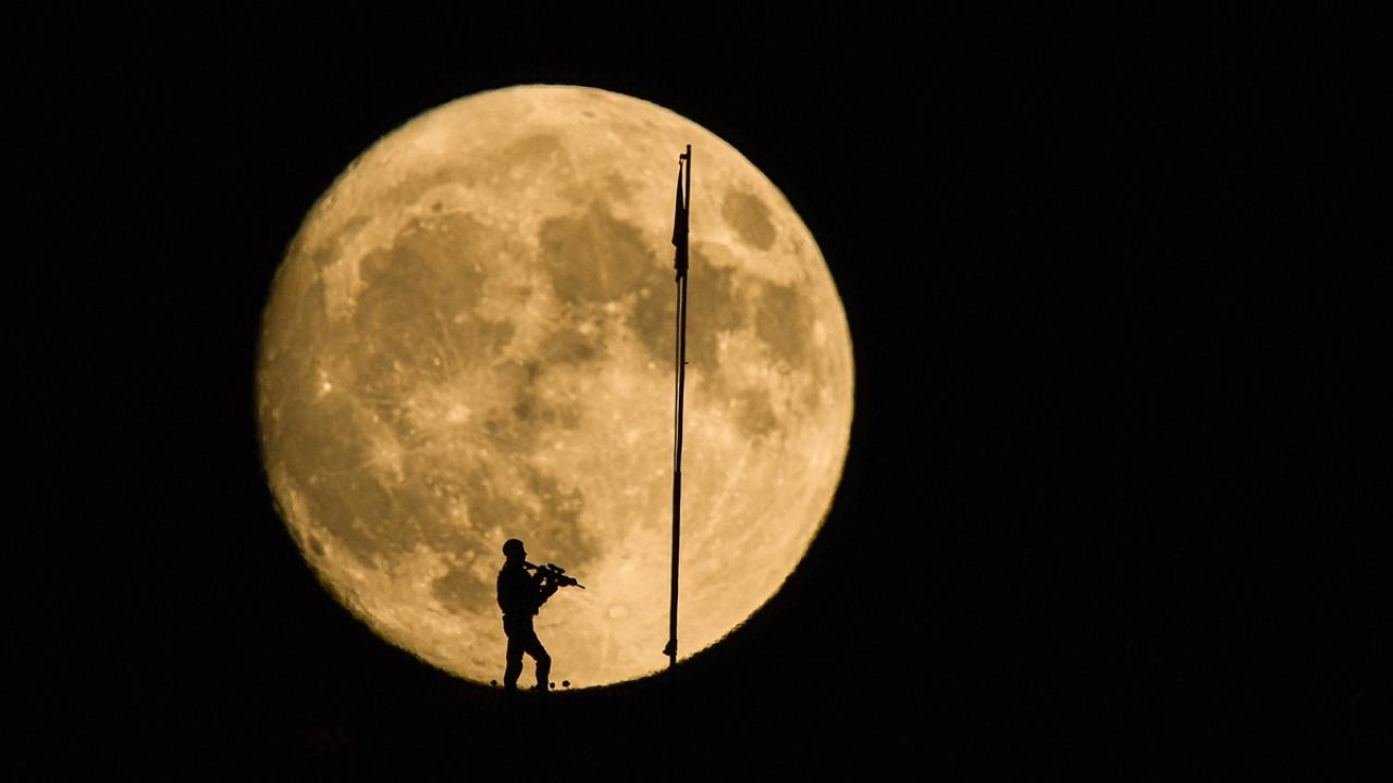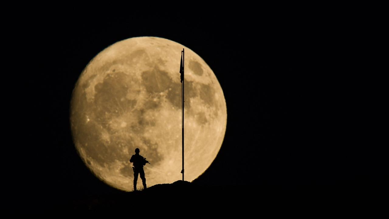 Ay'ın Dünya'ya en yakın konumda olduğu, normalden daha parlak ve büyük gözlemlendiği 'Süper Ay', Van'da bir noktada nöbet tutan polis ile görüntülendi.
