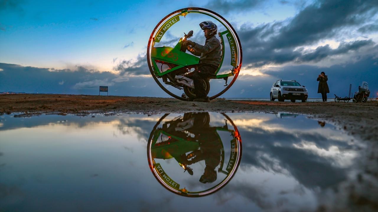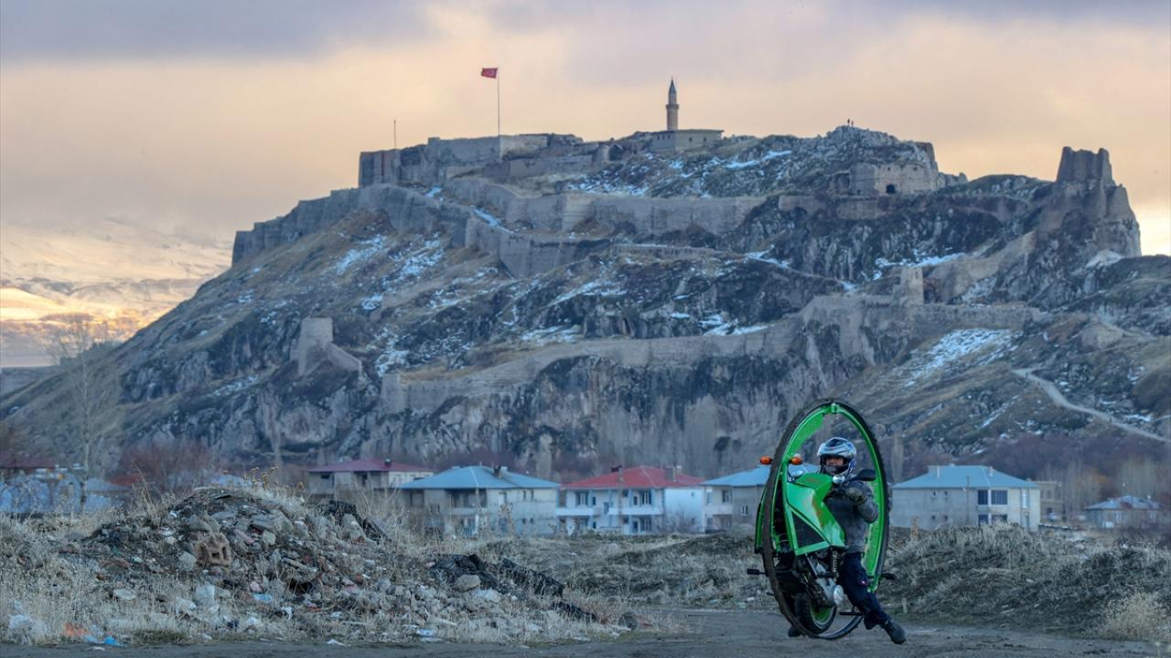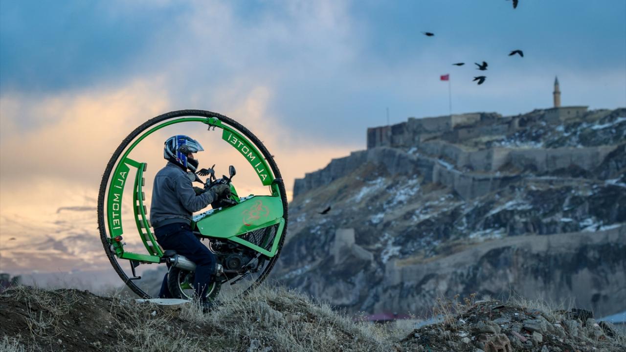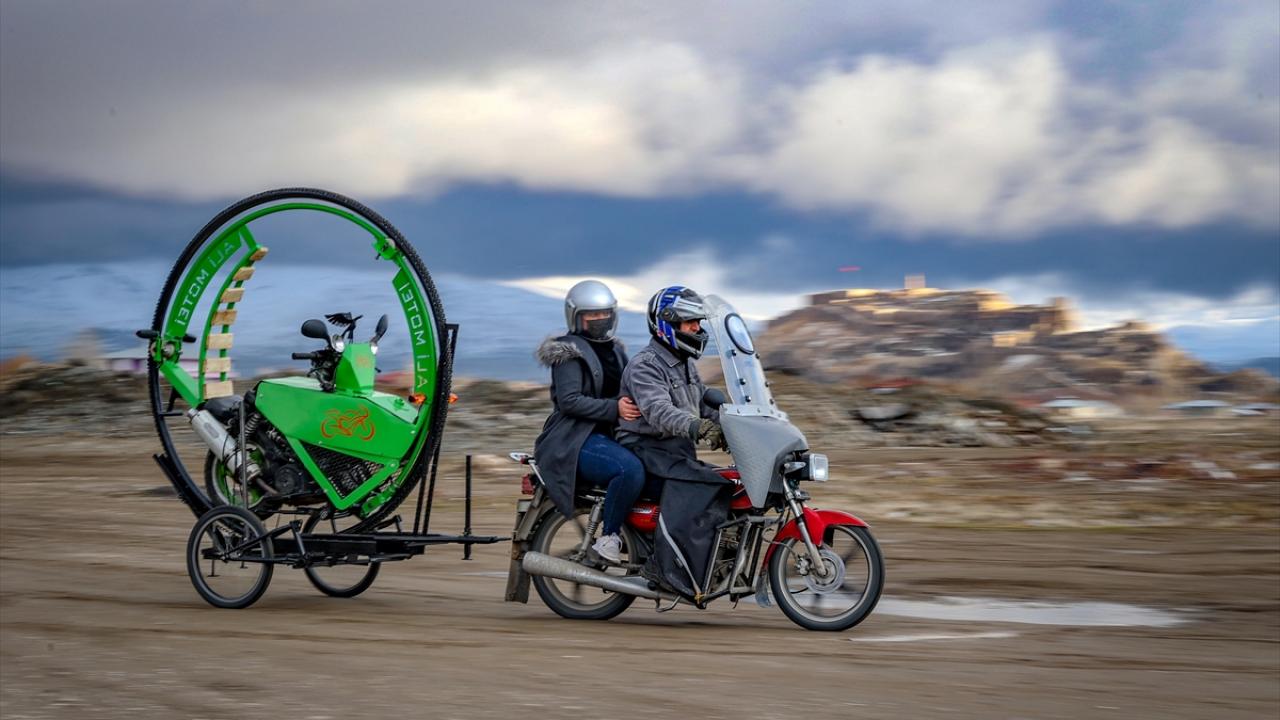 Van'da tek tekerlekli motosiklet görenleri şaşırtıyor