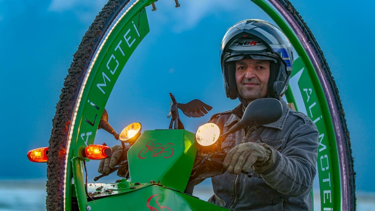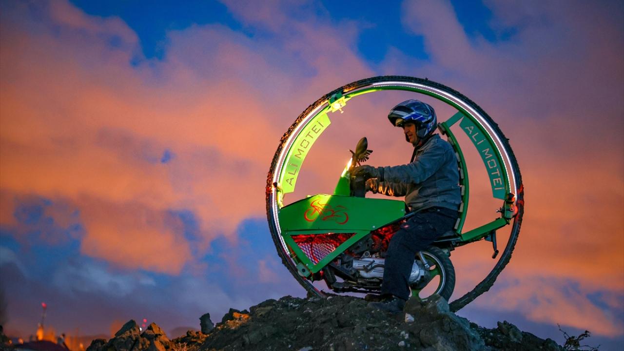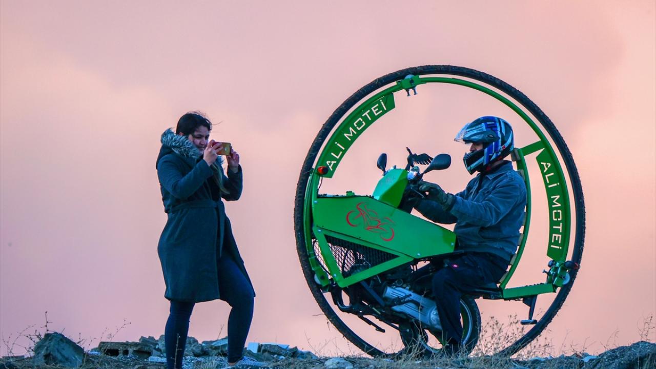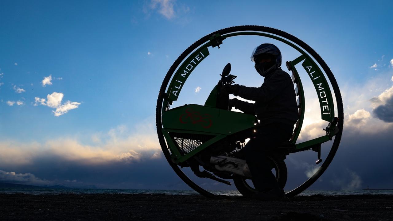 Van'da yaşayan İranlı heykeltıraş Ali Motei'nin hurdacılardan topladığı malzemelerle yaptığı tek tekerlekli motosiklet, görenleri şaşırtıyor.