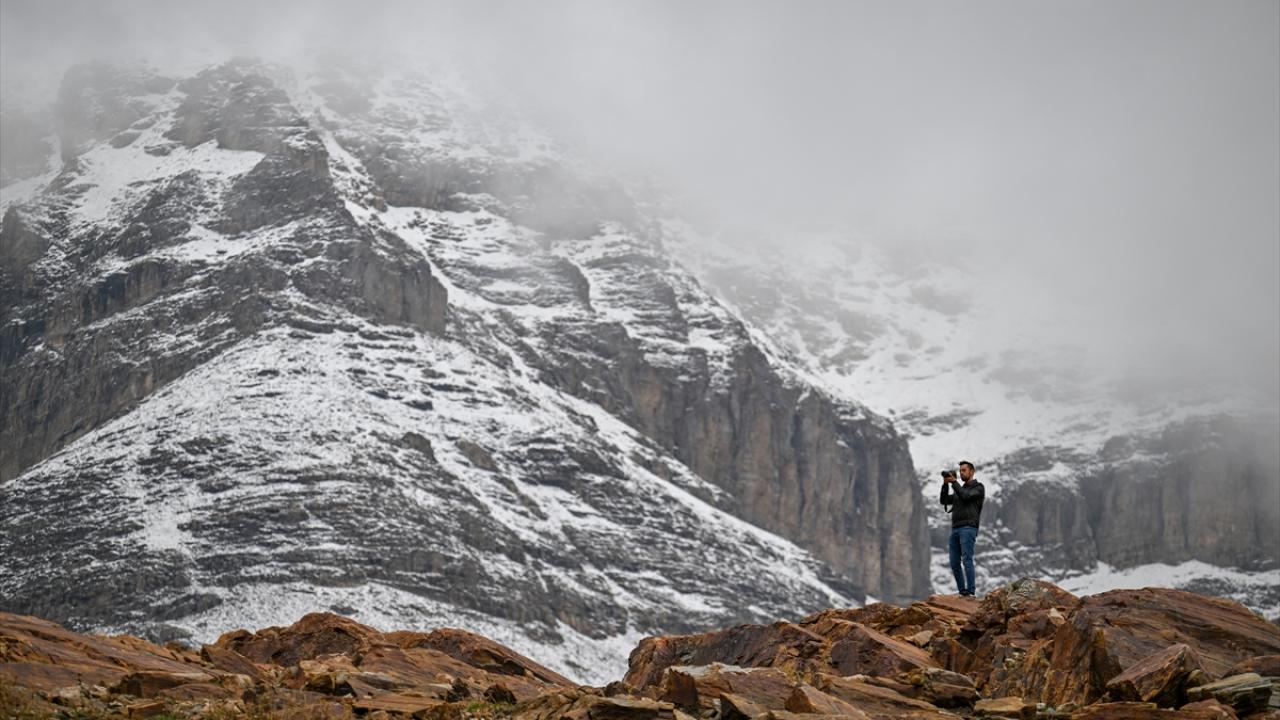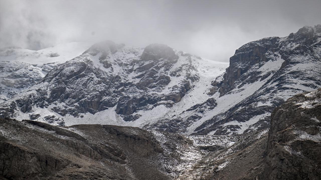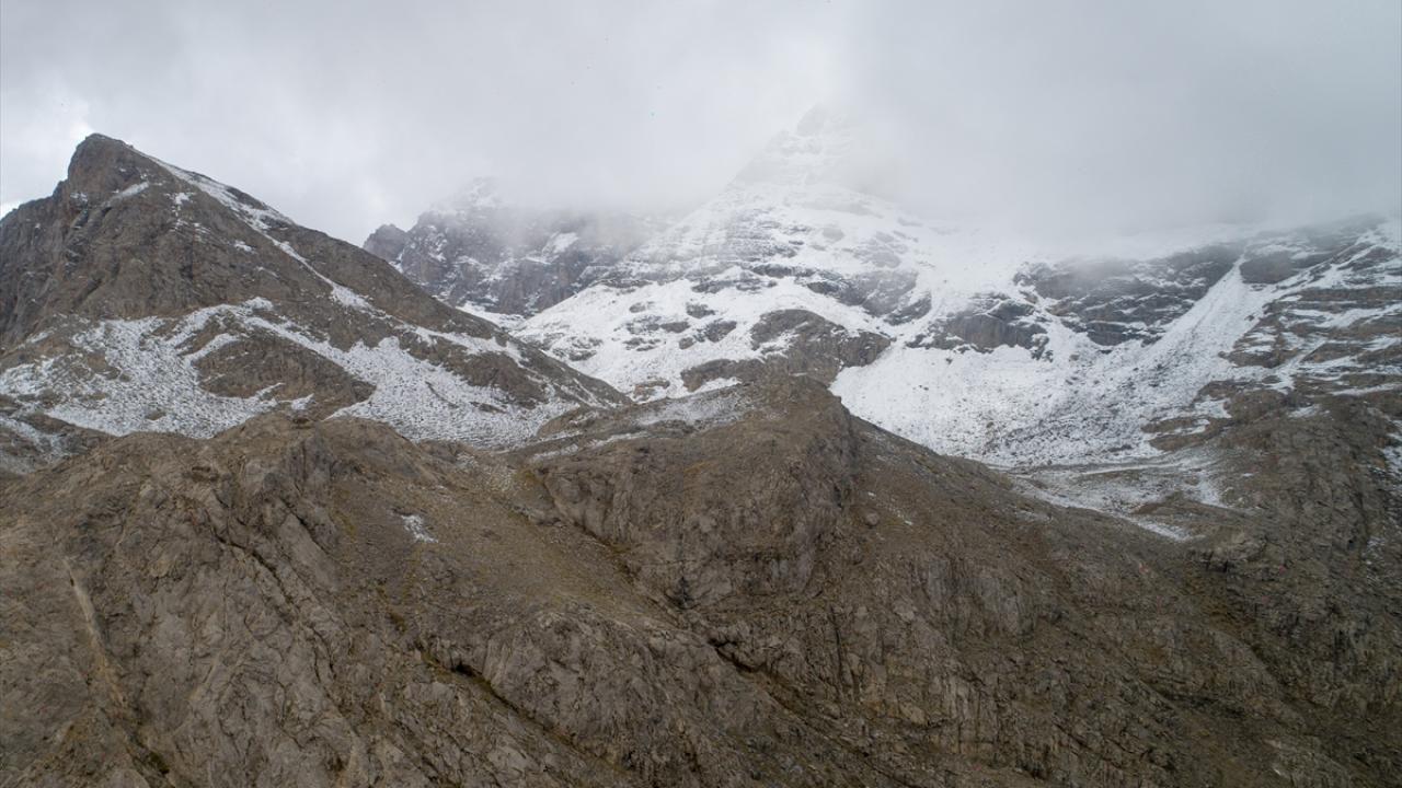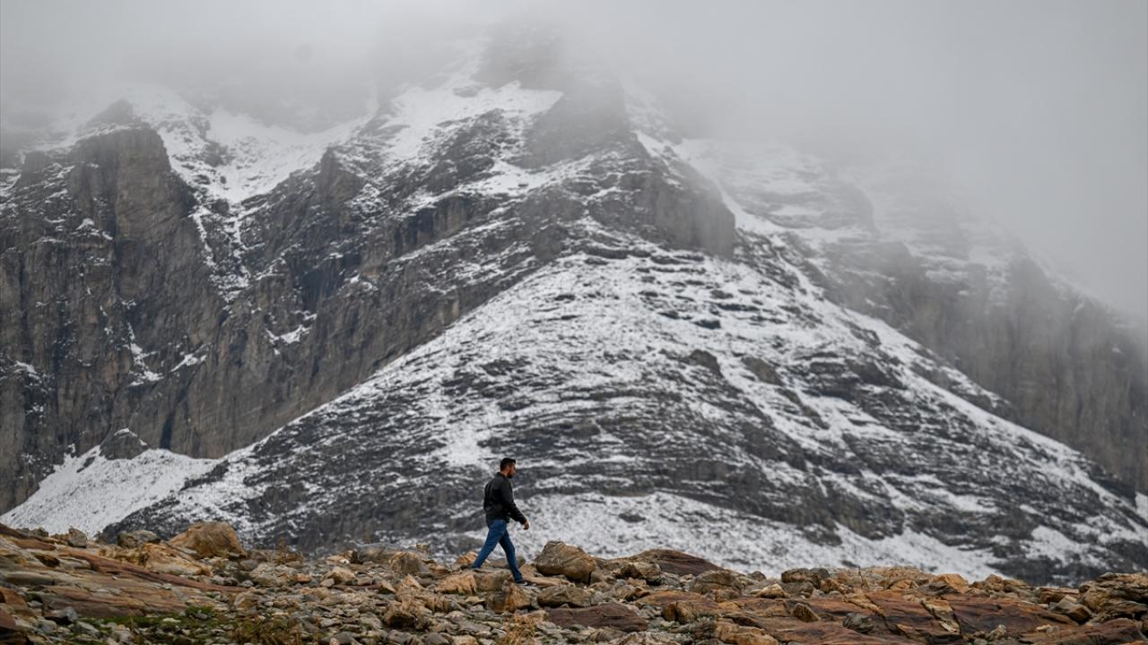 Van`da aralıklarla yağan yağmur, yüksek kesimlerde yerini kara bıraktı.