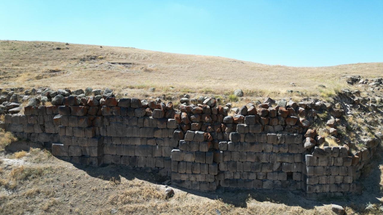 "Tapınağın dışında özgün değer olarak karşımıza sur duvarları çıkıyor. Bu şekilde ayakta duran bir kale yok. Yani Urartu taş işçiliğinin en önemli özelliklerini burada görüyoruz. Devasa taşlarla sur duvarları mevcut. Bu sur duvarları Urartu kalelerinde farklılığıyla ön plana çıkıyor. Özgün olarak karşımıza çıkmakta."