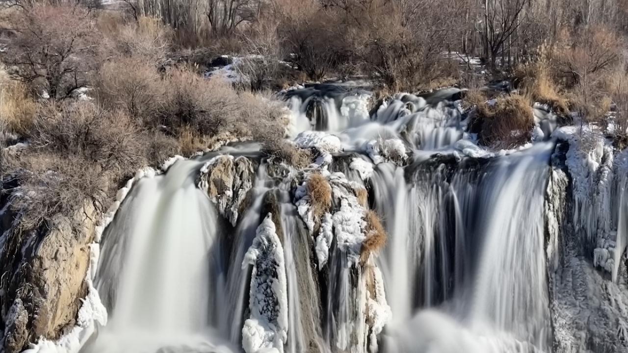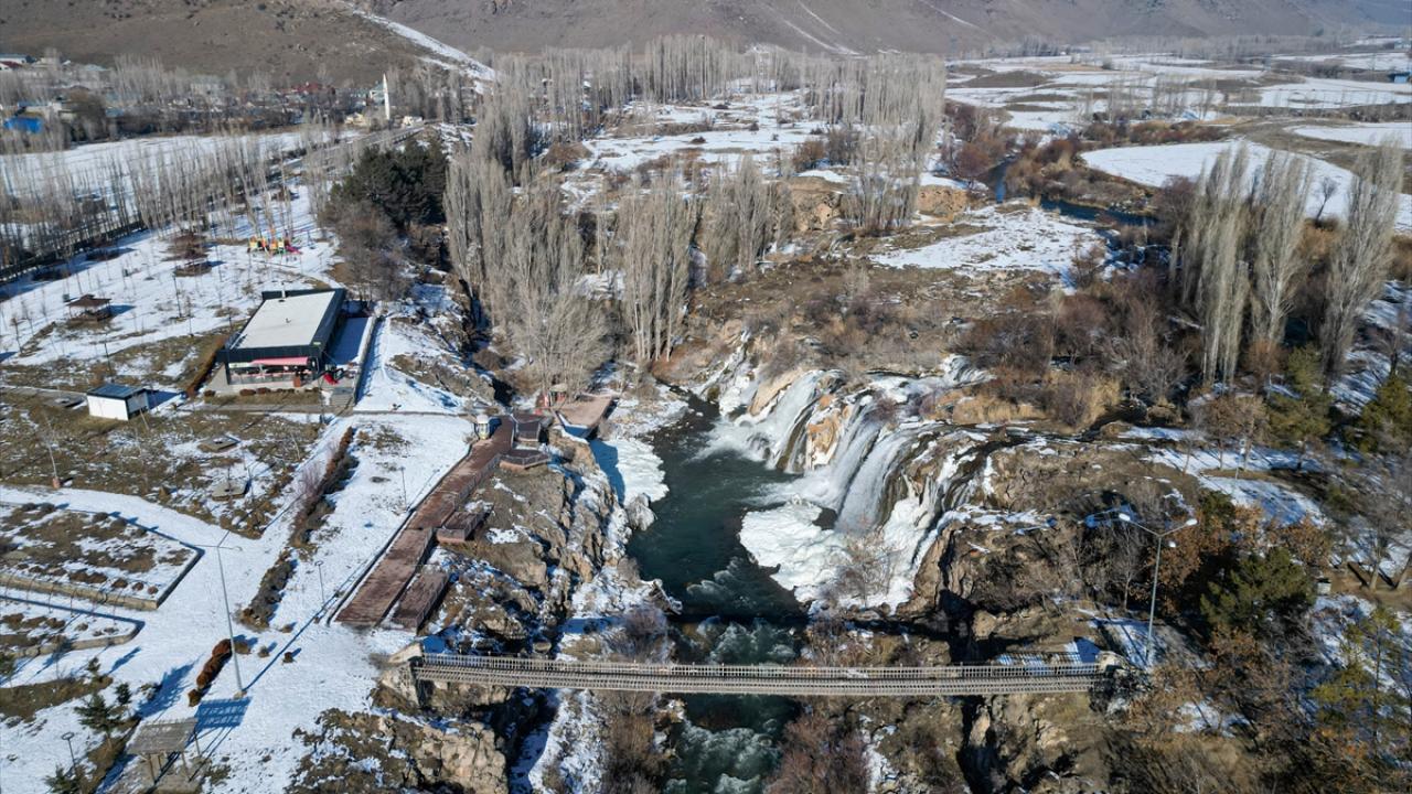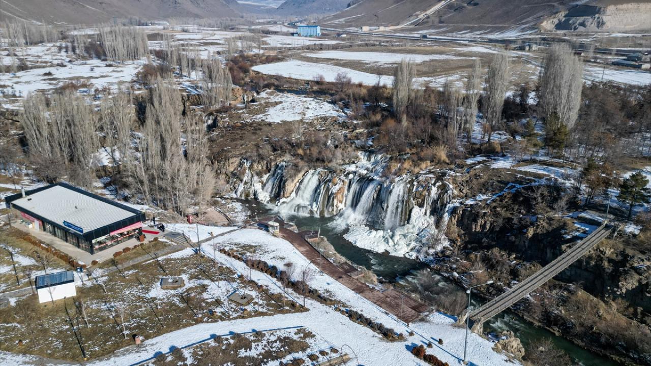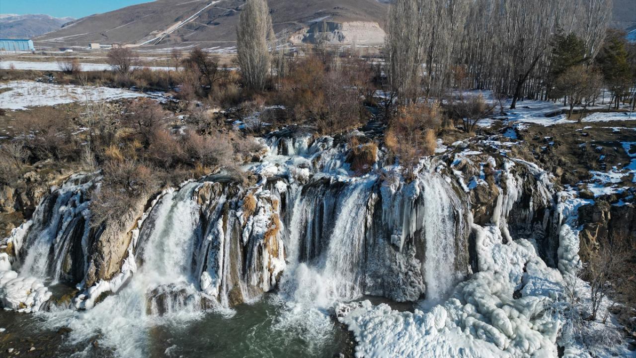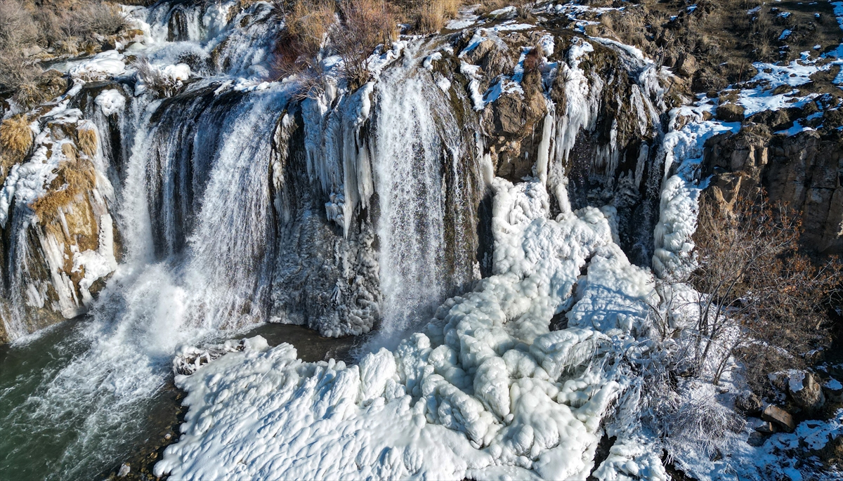 Van'ın Muradiye ilçesinde yerli ve yabancı turistlerin en çok ziyaret ettiği yerlerden Muradiye Şelalesi, soğuk havanın etkisiyle kısmen dondu.