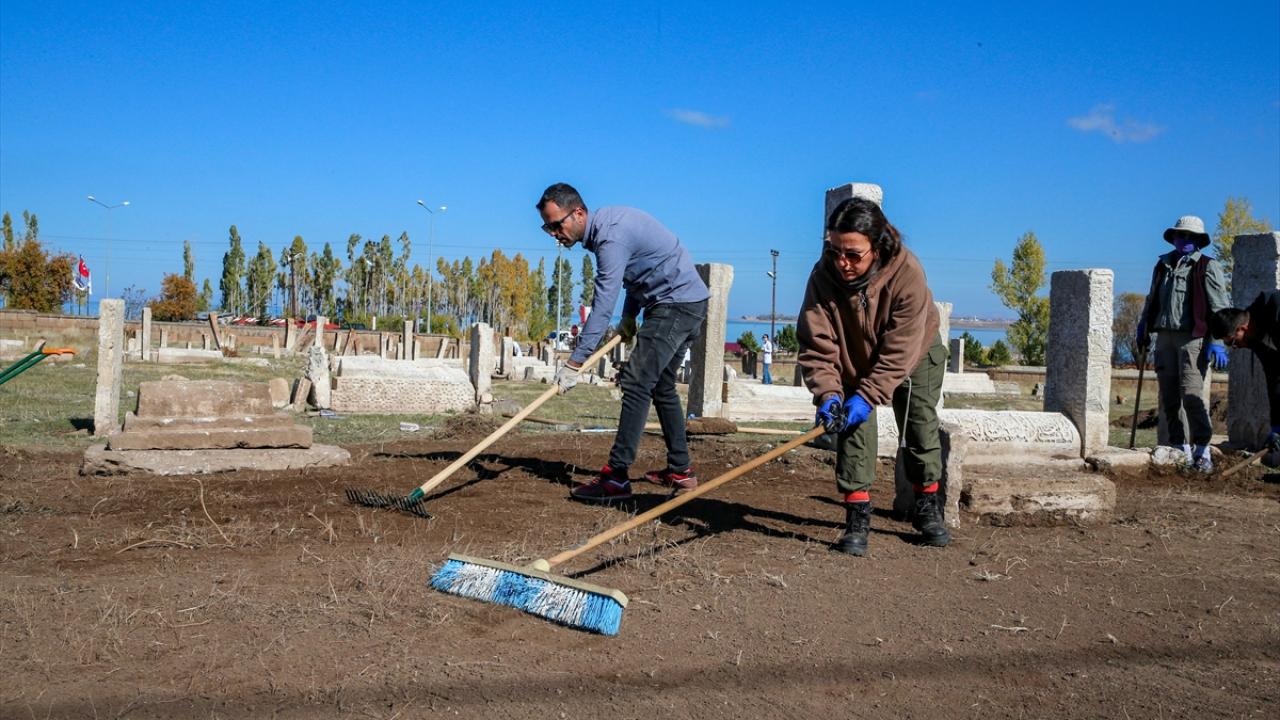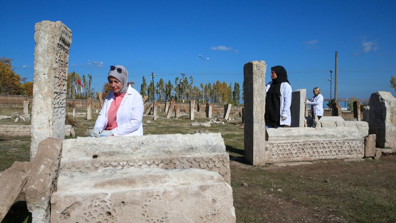 "Çalışmamız Van Valisi Ozan Balcı`nın girişimleriyle, Kültür ve Turizm Bakanlığının `Geleceğe Miras Projesi`ne dahil edildi. Şu ana kadar 100 mezar taşını ayağa kaldırdık. Blokaj çalışmaları yapıldı. Kırılan, eğrilen, düşen taşlar restore edildi. Diğer önemli bir husus da pafta numaraları bulunmayan 45 mezarı gün yüzüne çıkardık. Bunlar toprak altındaydı. Topraktan adeta tarih fışkırıyor. Selçuklulardan bu zamana toprak altında gömülü halde kalan taşlar, uzman ekiplerimizce çıkarıldı. Kitabe ve süslemeleri akademisyenlerimizce çözümlendi."