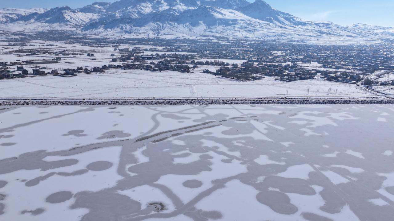 Dondurucu soğuklar nedeniyle Van-Özalp karayolunda sulama amaçlı kullanılan Sıhke Gölü`nün yüzeyi tamamen buz tuttu.