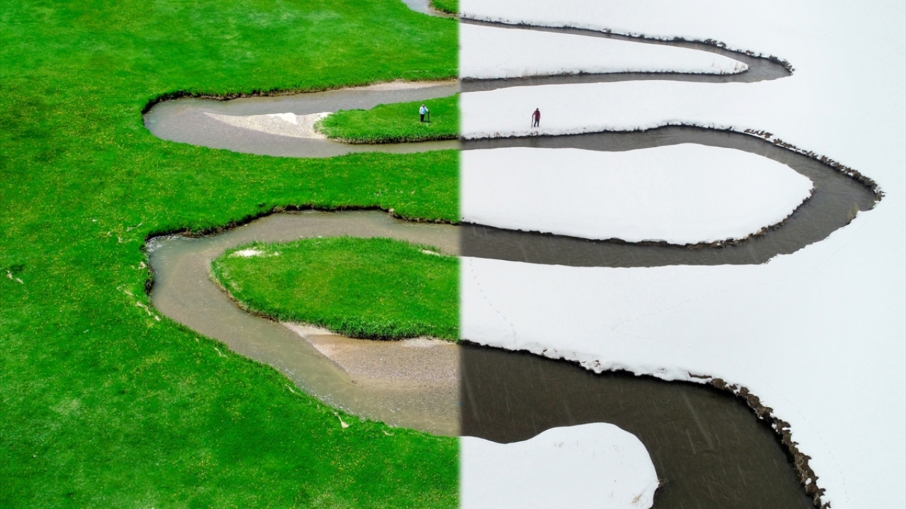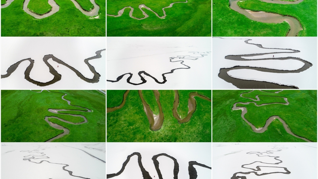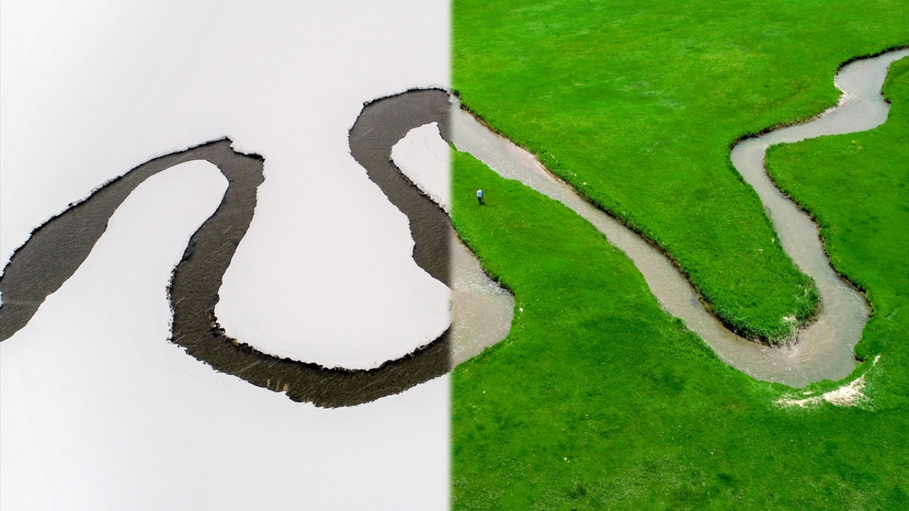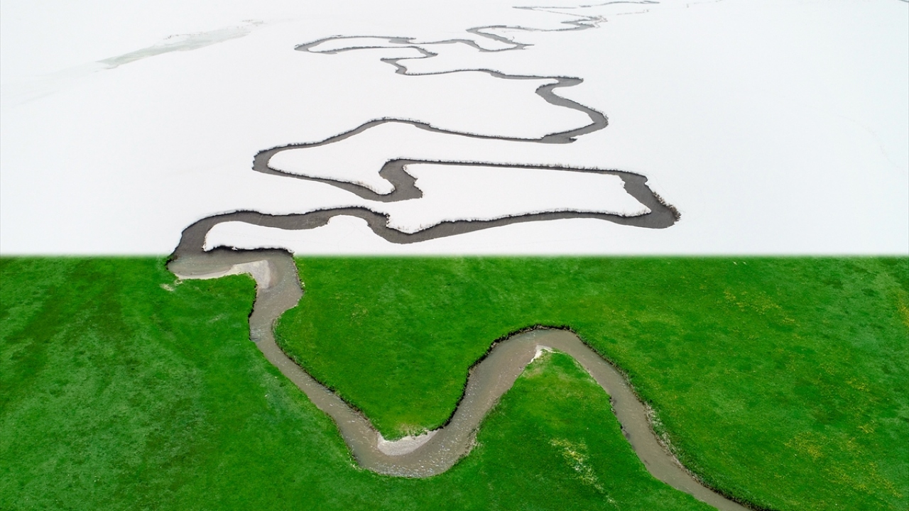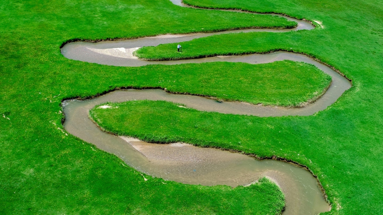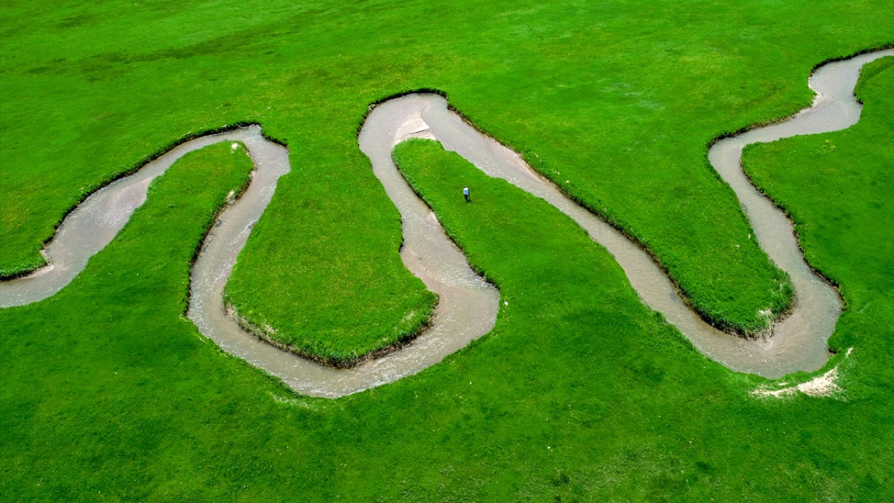 Van'da kar ve yağmur sularıyla beslenen derenin, yemyeşil tarım alanları arasından geçerek oluşturduğu menderesler, drone ile havadan görüntülendi.