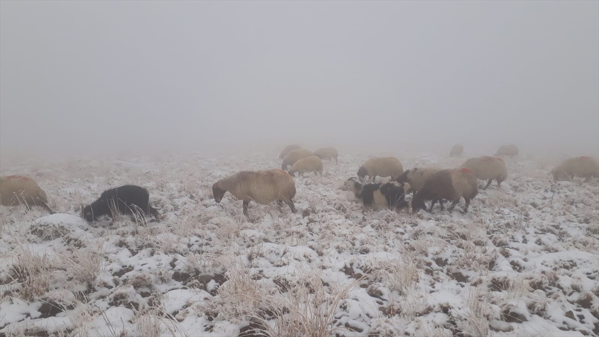 Küçükbaş hayvanlarını otlatmaya götüren besiciler de kar nedeniyle zor anlar yaşadı.