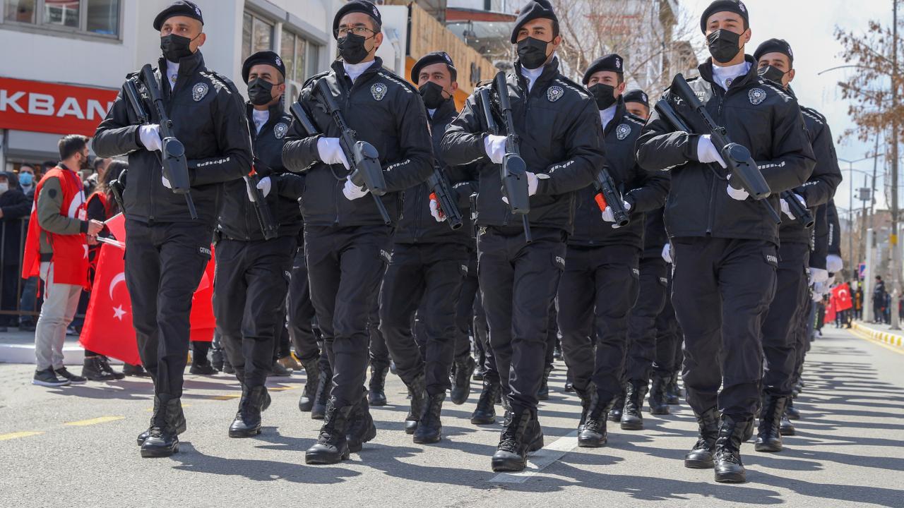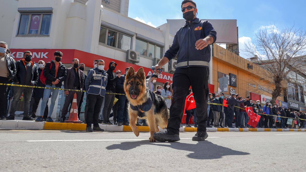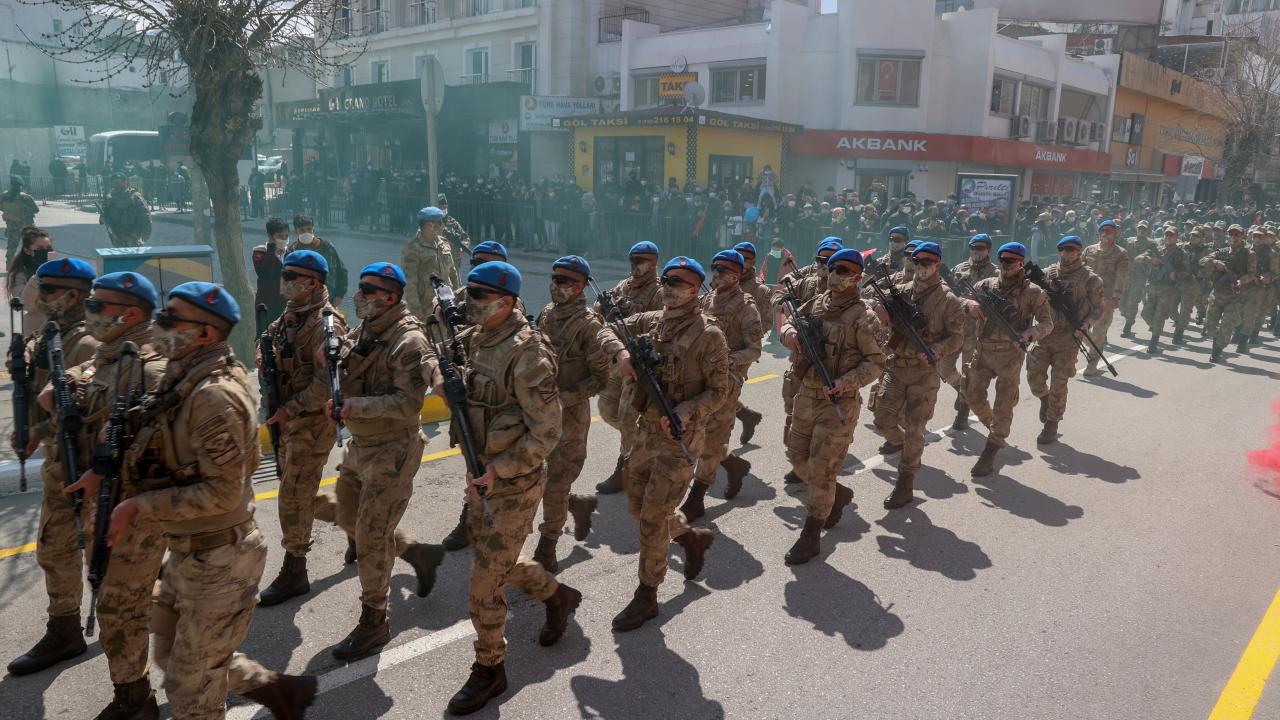 Resim ve kompozisyon yarışmasında dereceye giren öğrencilere hediyelerinin verildiği etkinlikte askeri tören geçişi gerçekleştirildi.