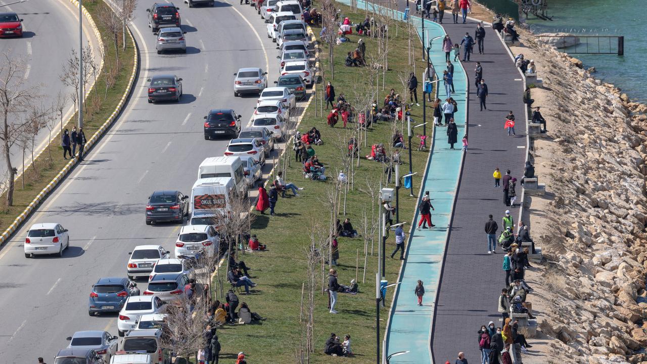Edremit Kent Meydanı`nda bir araya gelen vatandaşlar, gösteri uçuşunu telefonlarıyla kaydetti.