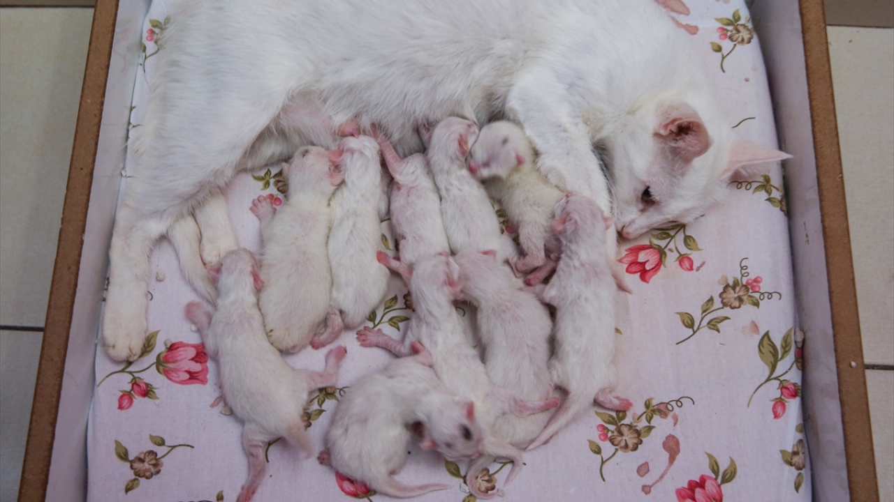 Van Yüzüncü Yıl Üniversitesi (YYÜ) Van Kedisi Araştırma ve Uygulama Merkezinde koruma altında tutulan Van kedisi "Nazlı", tek seferde 10 yavru doğurdu.