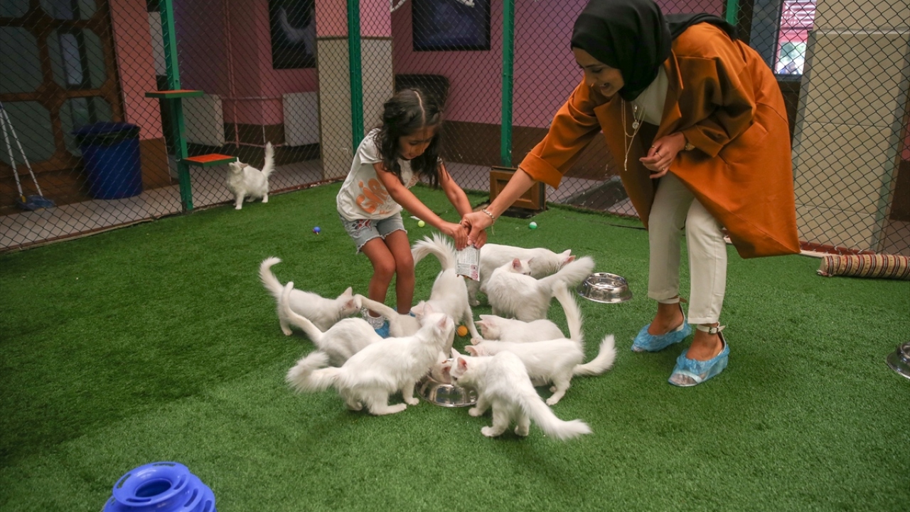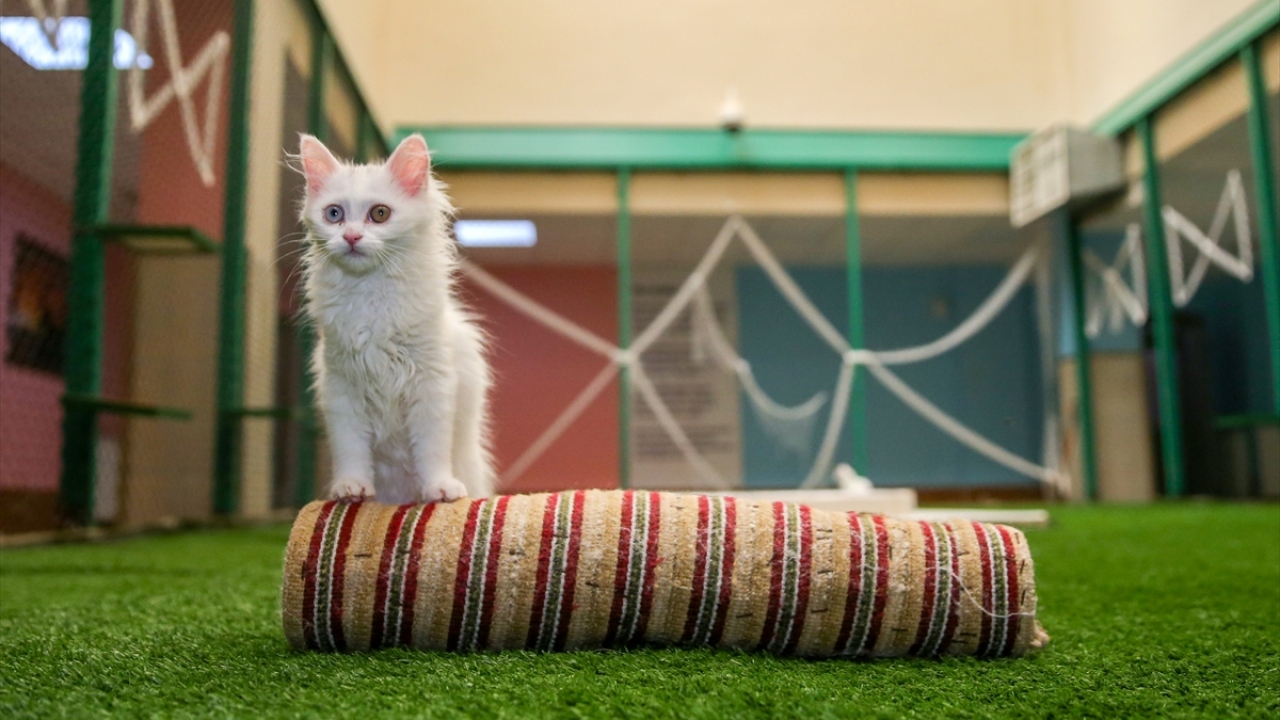 Oyun alanları, havuz, dinlenme odaları gibi imkanların bulunduğu merkezde korumaya alınan kedilerden "Nazlı" da tek batında 10 yavru doğurdu.