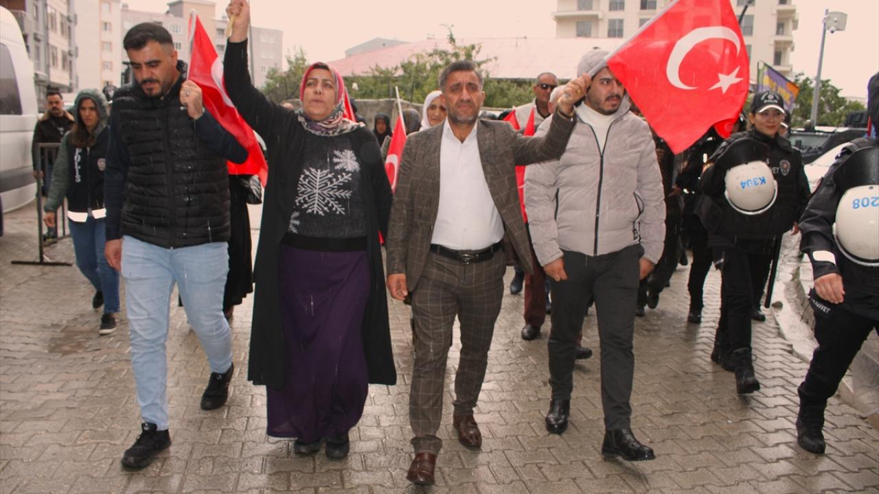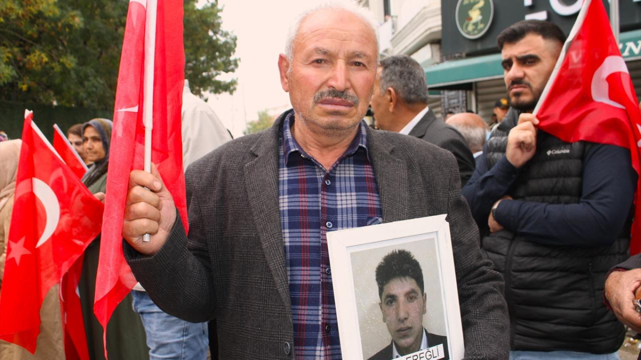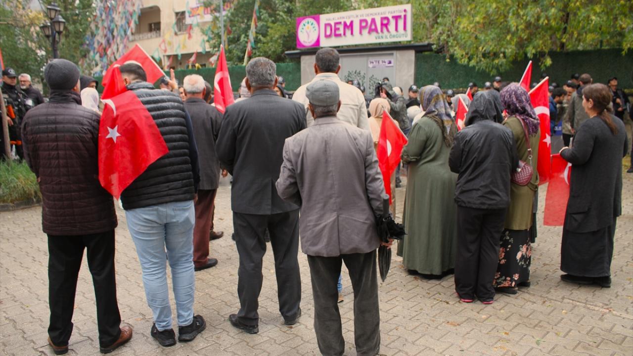 Menekşe Sokak`ta bir araya gelen aileler, ellerinde Türk bayrakları ve dövizlerle DEM Parti İl Başkanlığı binasının önüne yürüdü.