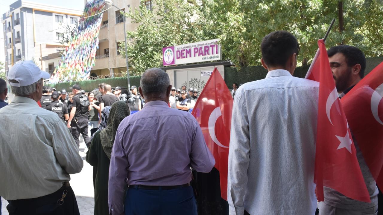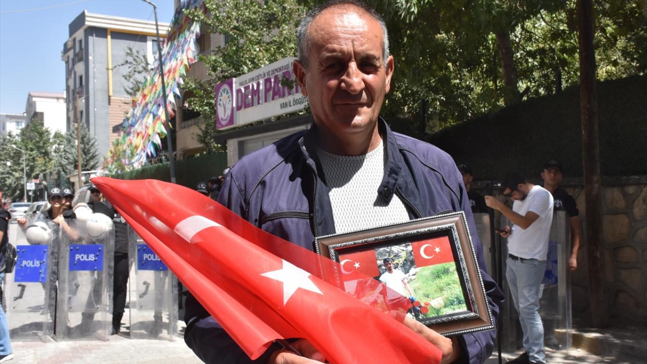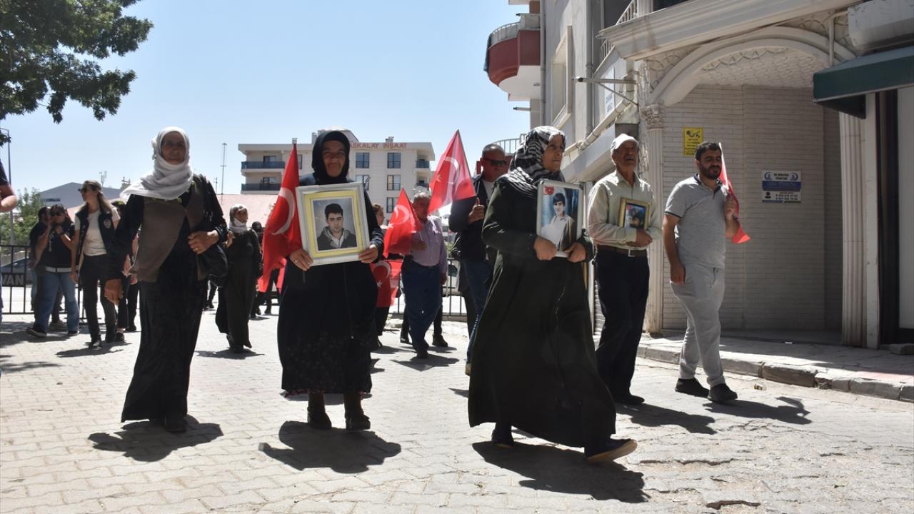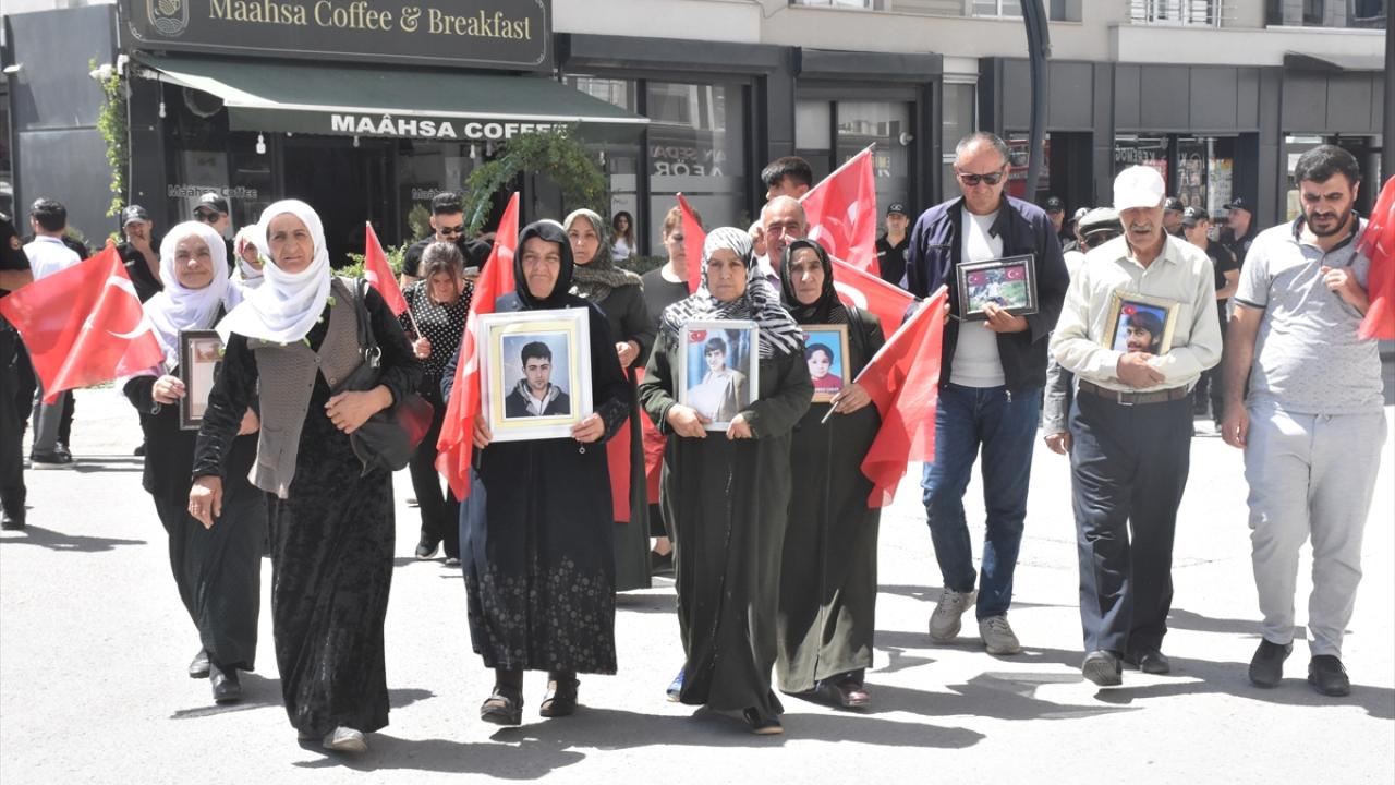 Menekşe Sokak`ta bir araya gelen aileler, Türk bayrakları ve evlatlarının fotoğraflarını taşıyarak, DEM Parti İl Başkanlığı binasının önüne kadar yürüdü.