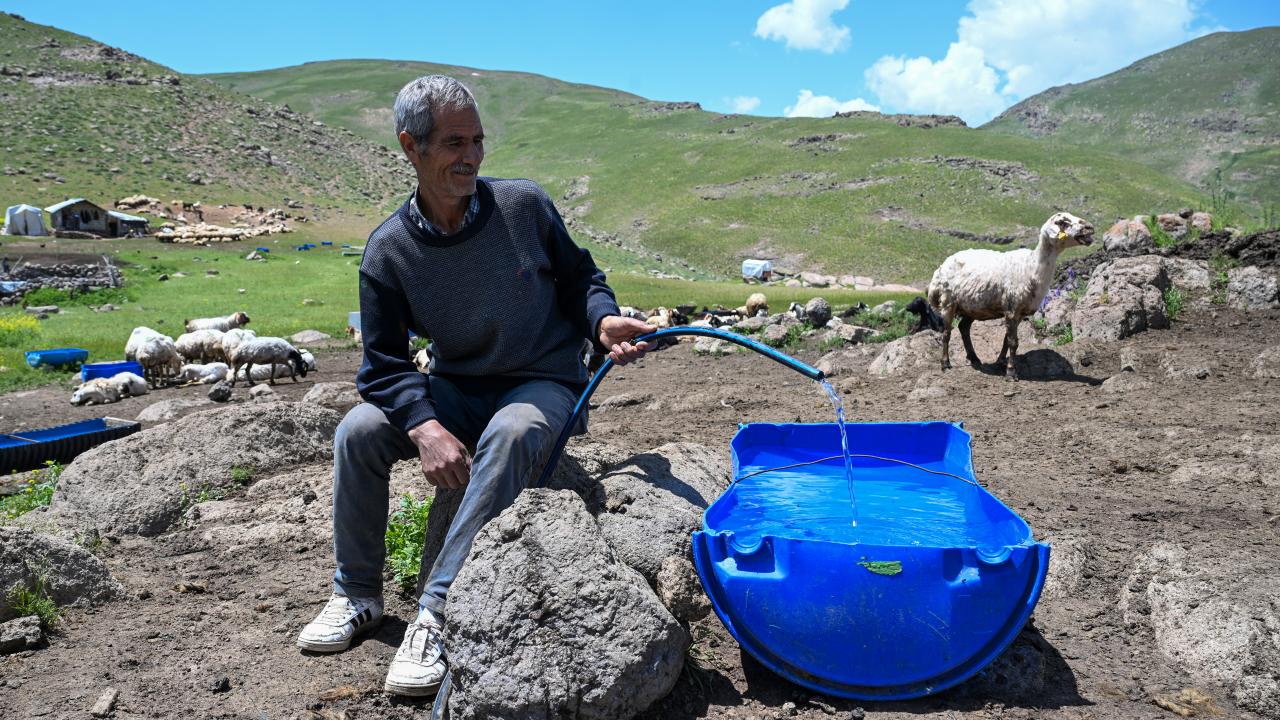 Açıkyol Mahallesi`nde yaşayan 56 yaşındaki 6 çocuk babası Vanlı, yaklaşık 600 koyundan oluşan sürüsüne kışın yayladaki ahırda, diğer dönemlerde de yaylada bakıyor.