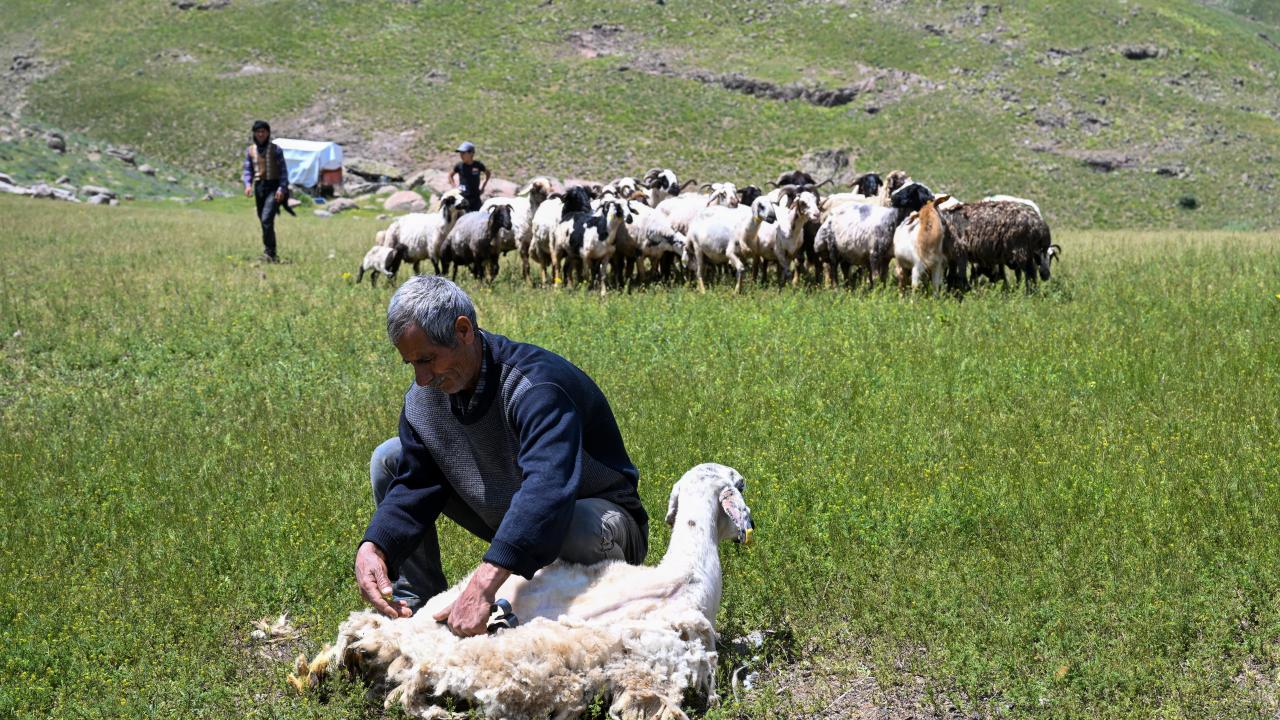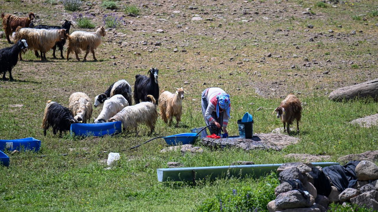 Günün ilk ışıklarıyla hayvanların bakım mesaisine başlayan Vanlı, her gün koyunlardan birkaçının yününü kırktığını daha sonra yaylada otlattığını söyledi.