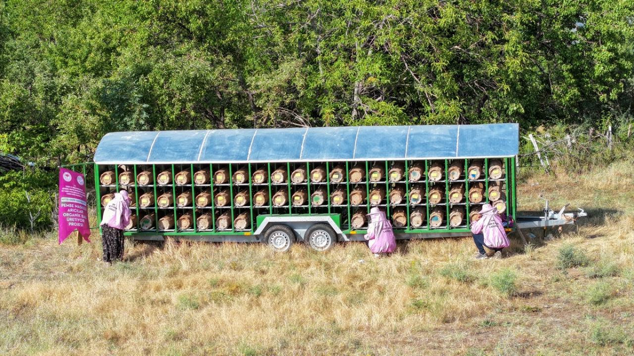 Yörenin verimli yaylalarında pembe kıyafetleriyle organik bal üreten kadınlara, Tarım ve Orman Bakanlığı Bitkisel Üretim Genel Müdürlüğünce 250 arılı karakovan hibe edildi.