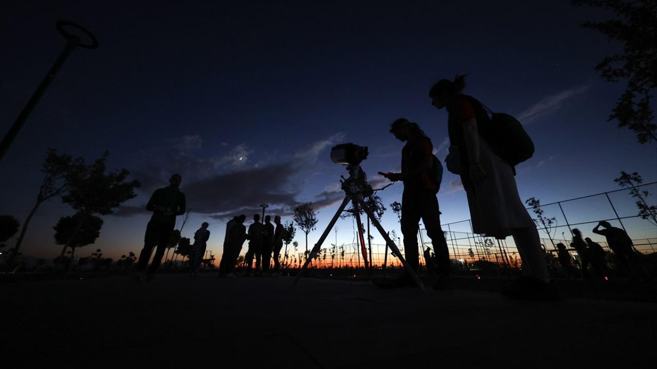 Van'ın Edremit ilçesindeki Fidanlık Parkı'nda düzenlenen Van Gökyüzü Gözlem Etkinliği'ne katılan davetliler, hem çıplak gözle hem de teleskoplarla gökyüzünü gözlemleme ve fotoğraflama imkanı buldu.