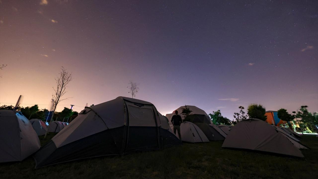 Katılımcılar için çadırların kurulduğu alanda, gençler hem Ay`ı, yıldızları, gezegenleri gözlemleme hem de astronomiyle ilgili bilgiler edinme fırsatı buluyor.