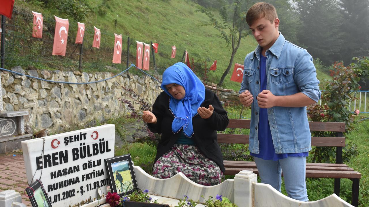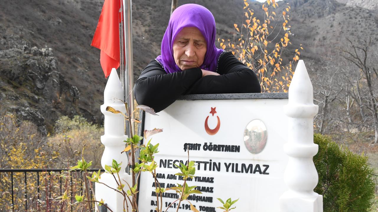 2017`de Tunceli`de PKK`lı teröristlerce katledilen sınıf öğretmeni Necmettin Yılmaz`ın annesi Gülay Yılmaz, 24 Kasım Öğretmenler Günü dolayısıyla oğullarının, Gümüşhane`nin Torul ilçesine bağlı Demirkapı köyünde bulunan mezarını ziyaret etti.
