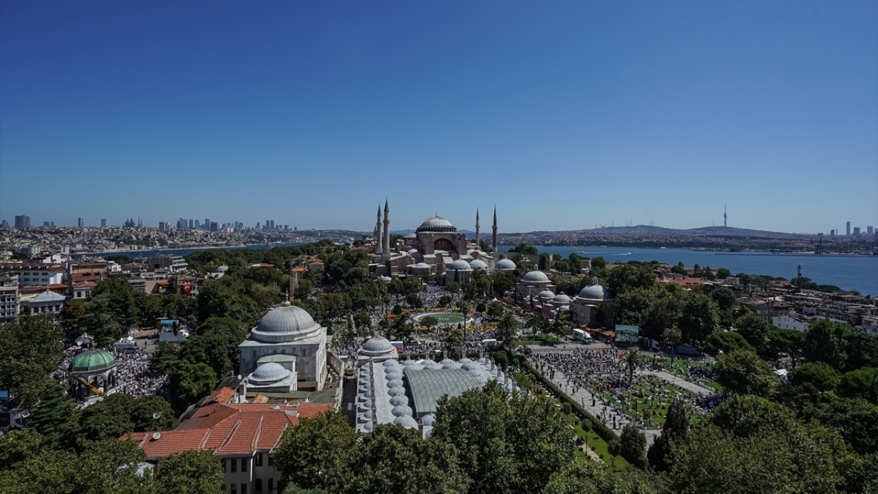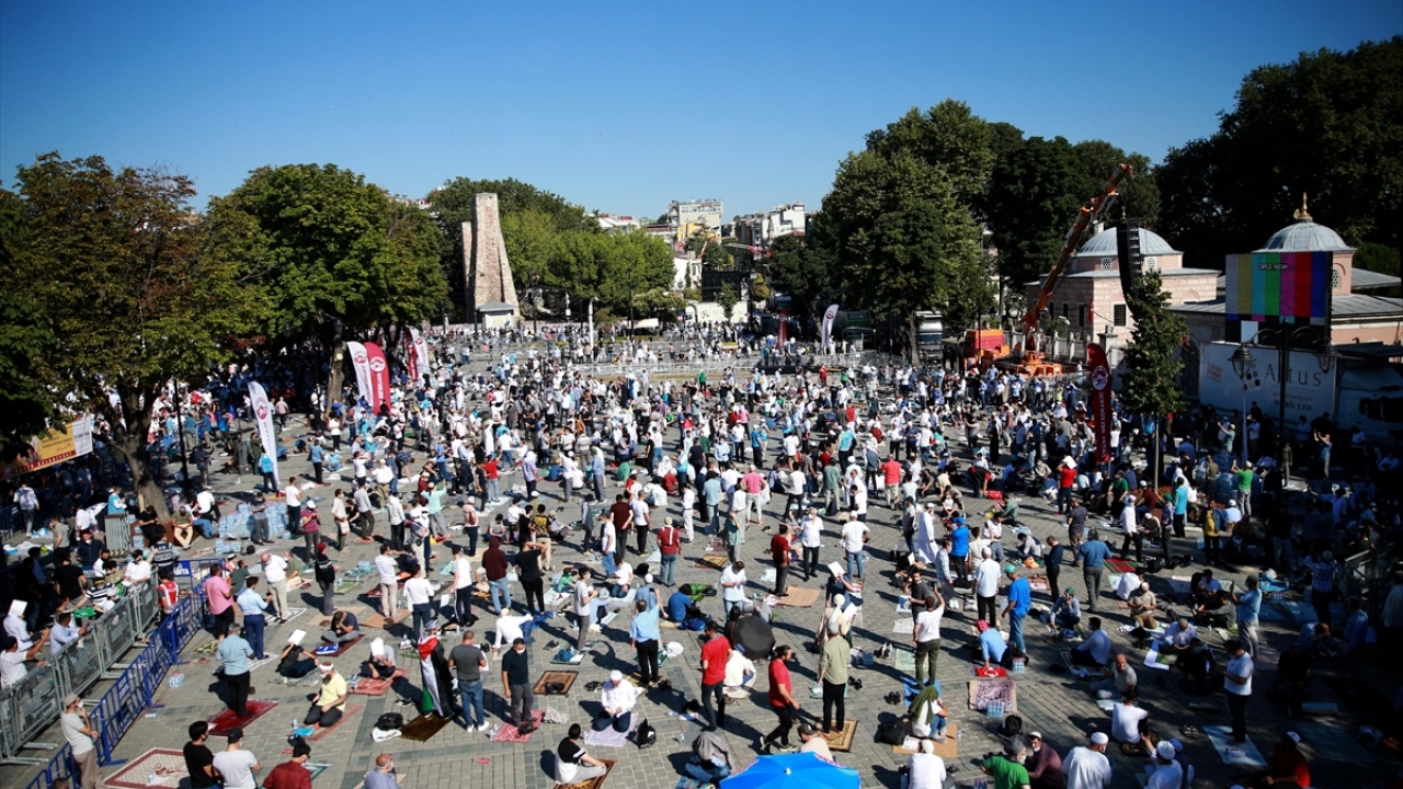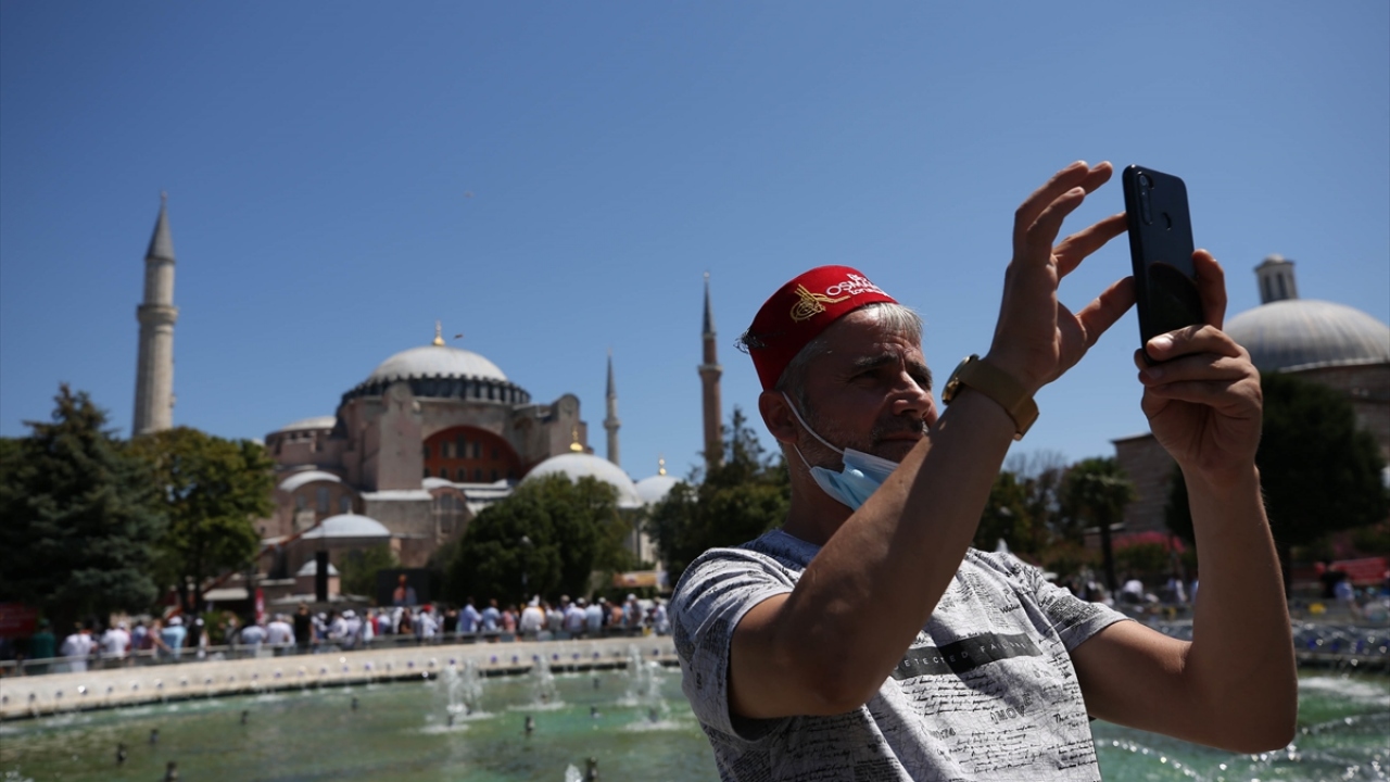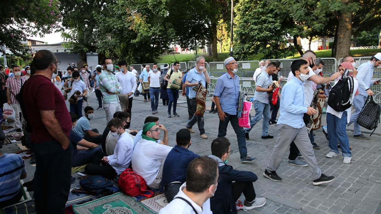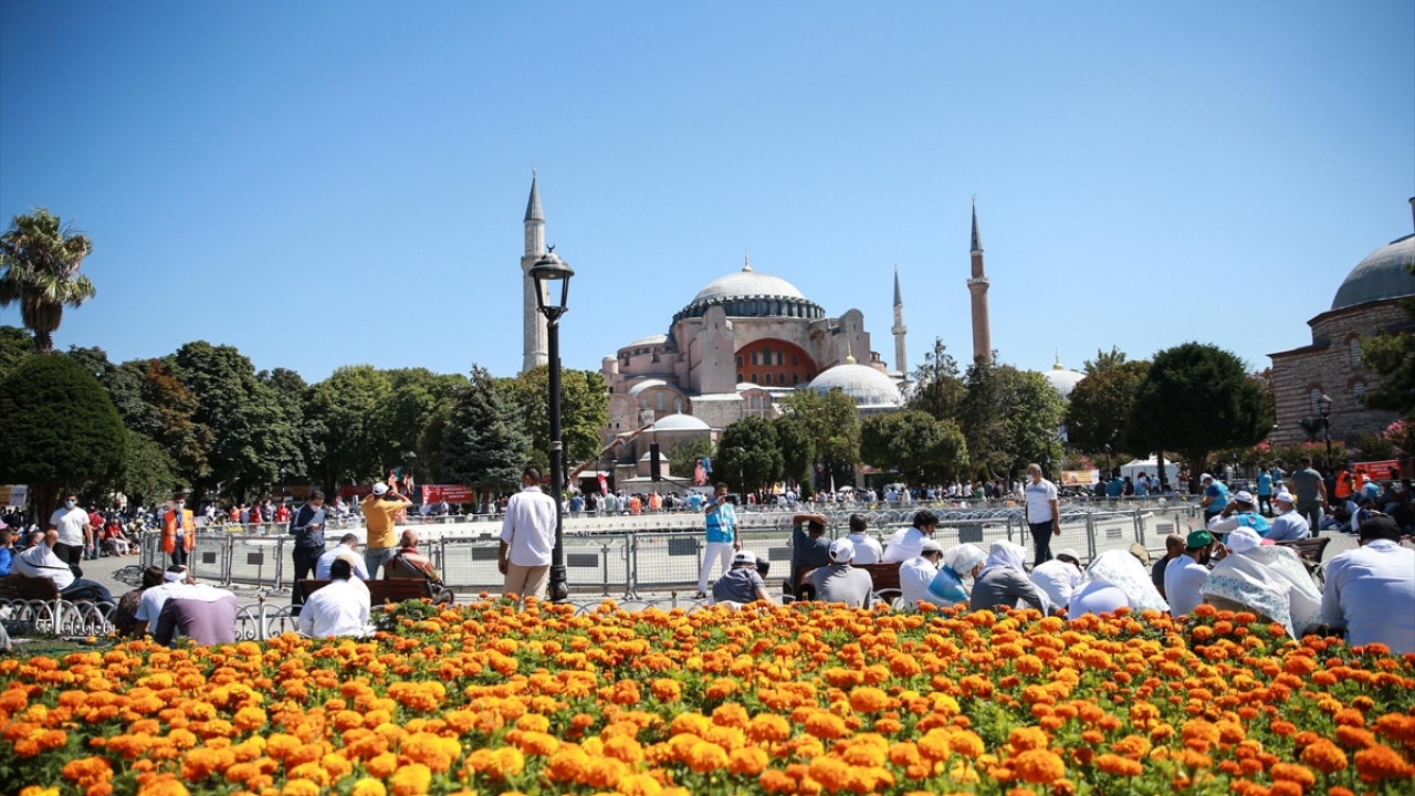 Vatandaşlar 86 yıl aradan sonra bugün kılınacak cuma namazı ile ibadete açılacak olan Ayasofya-i Kebir Cami-i Şerifi'ne akın ediyor.