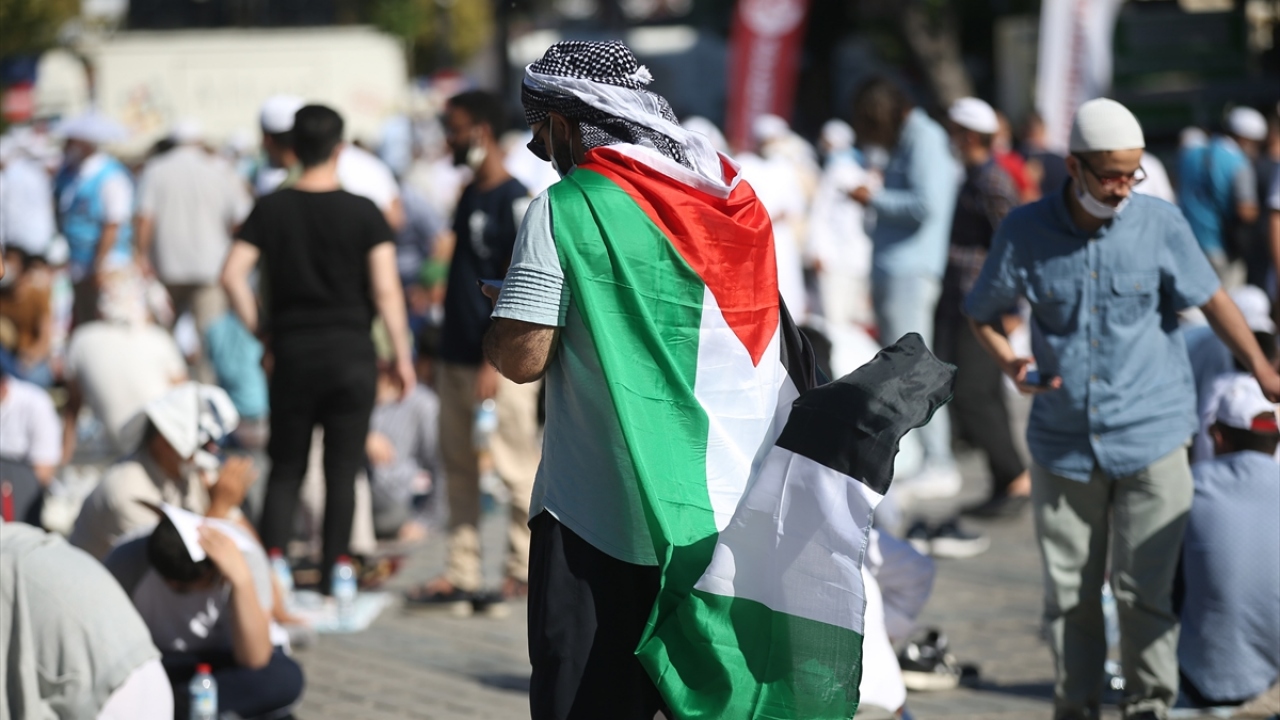 Çok sayıda vatandaş Ayasofya-i Kebir Cami-i Şerifi`ne gelerek, cuma namazı kılmak için beklemeye devam ediyor.