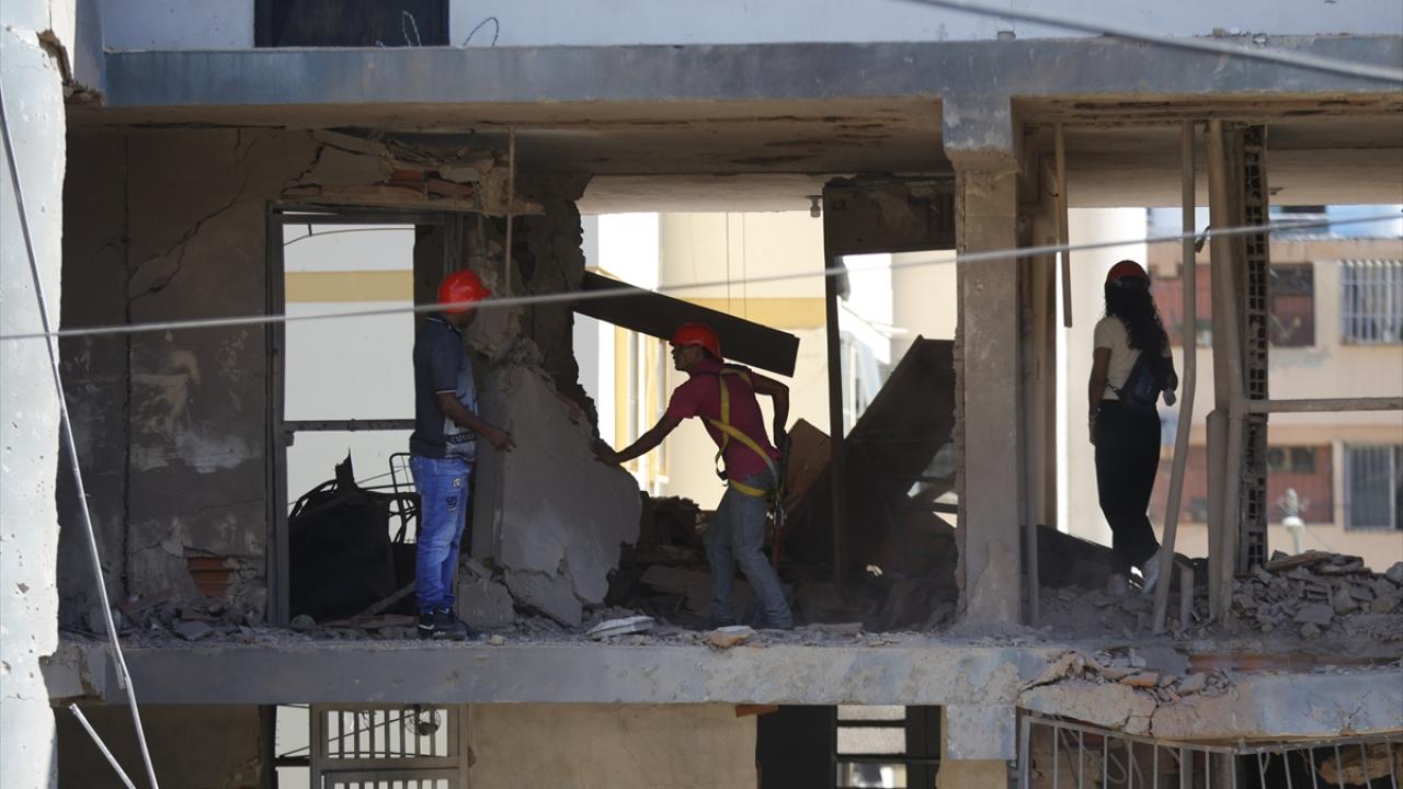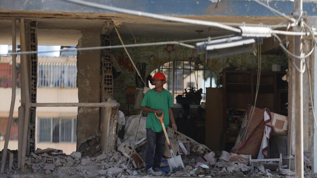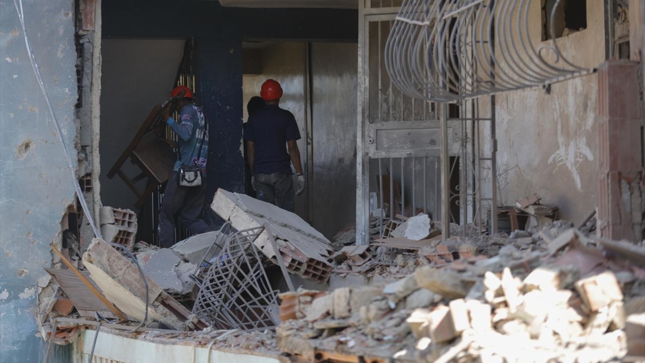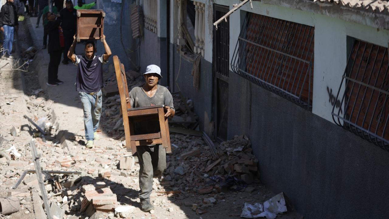 Venezuela’nın La Guaira kentindeki Soublette Mahallesi’nde işçiler, ABD güçlerinin 3 Ocak'taki askeri operasyonları sırasında zarar gördüğü belirtilen bir apartmanda enkaz temizleme çalışması yaptı.