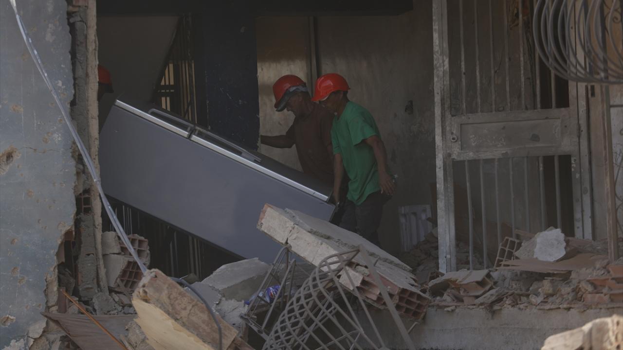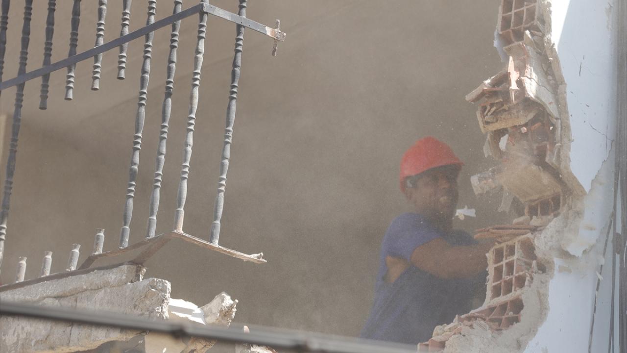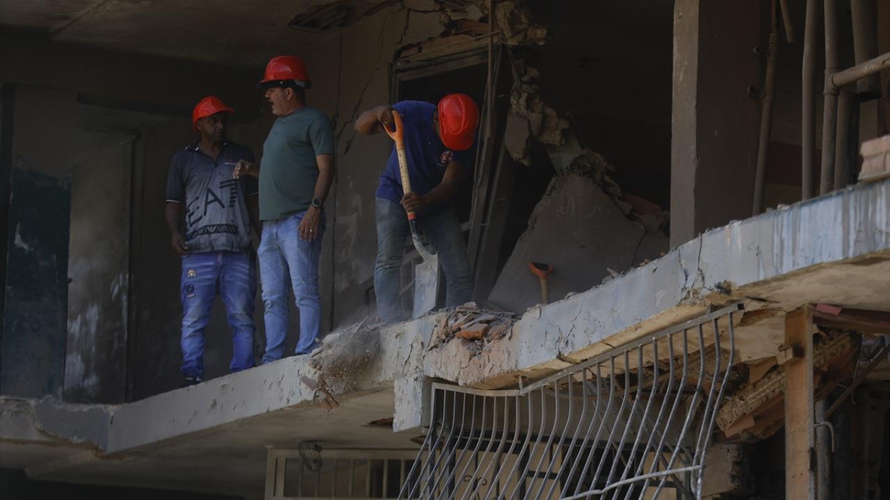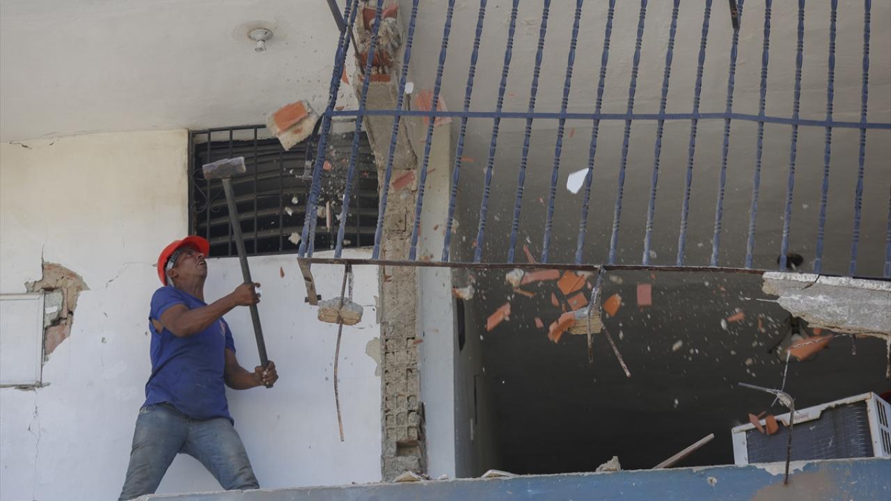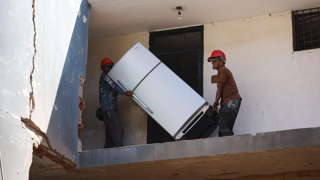 Venezuela’nın La Guaira kentindeki Soublette Mahallesi’nde işçiler, ABD güçlerinin 3 Ocak'taki askeri operasyonları sırasında zarar gördüğü belirtilen bir apartmanda enkaz temizleme çalışması yaptı.