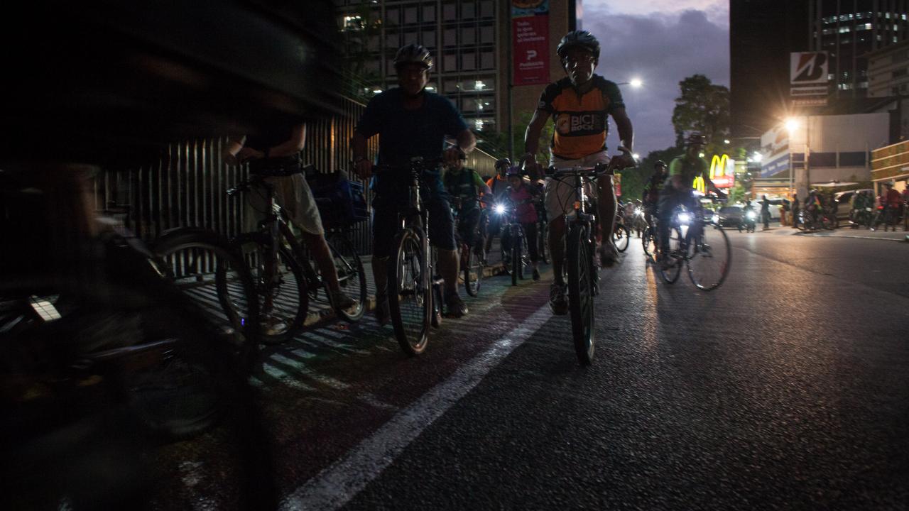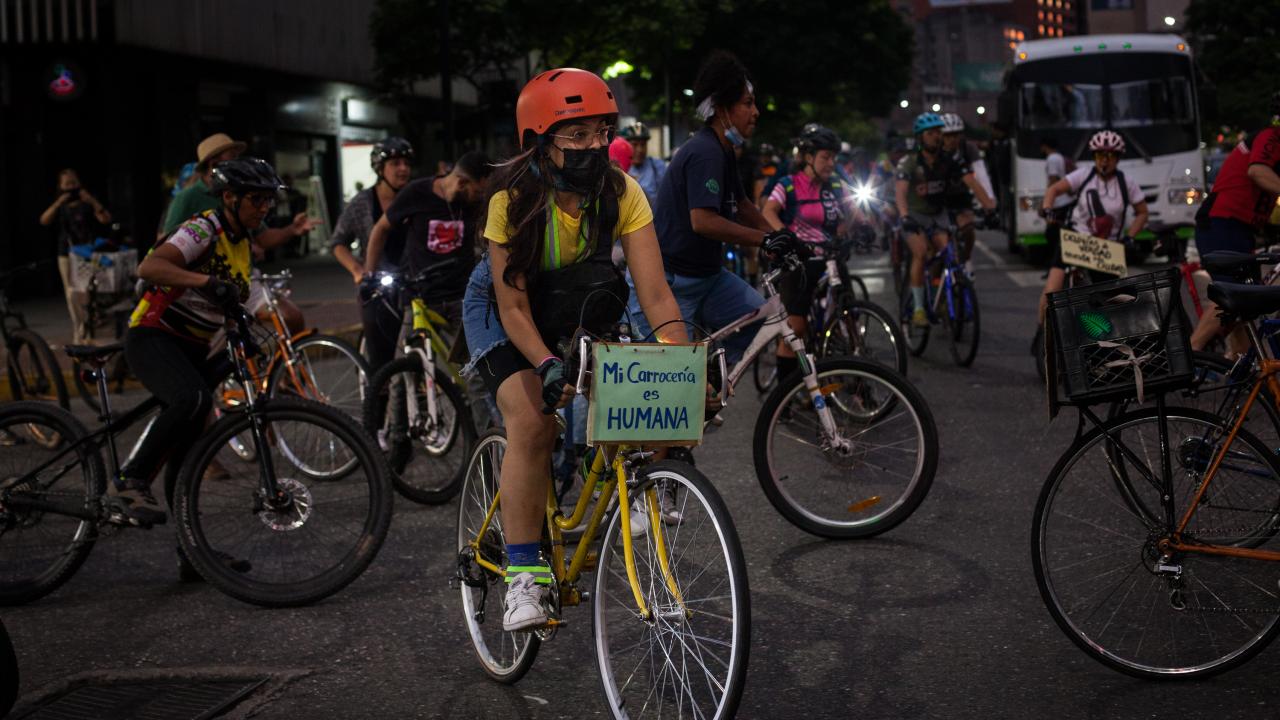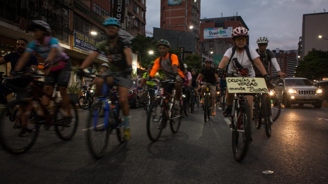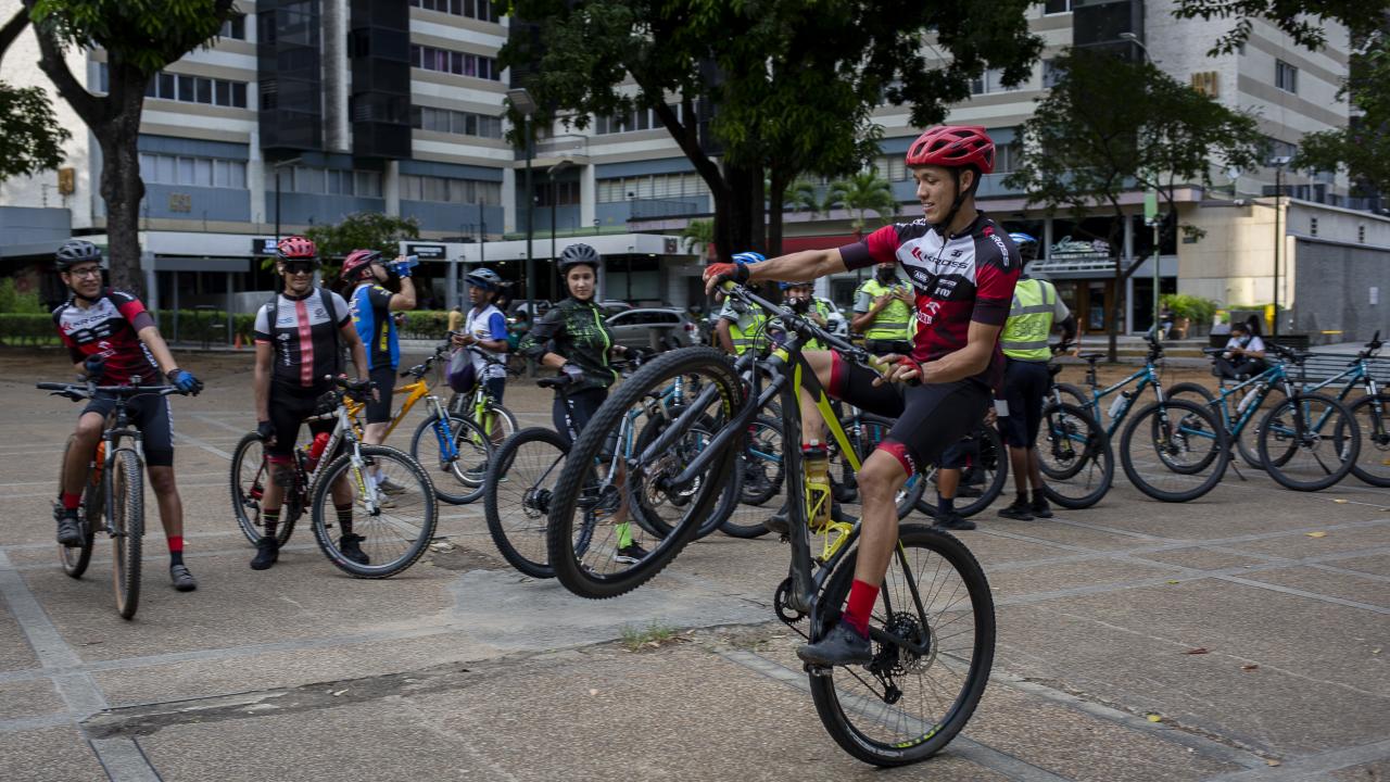 Venezuela'nın başkenti Caracas'ta, Dünya Bisiklet Günü dolayısıyla düzenlenen bisiklet turuna çok sayıda kişi katıldı.