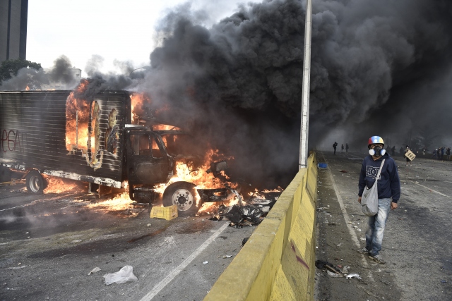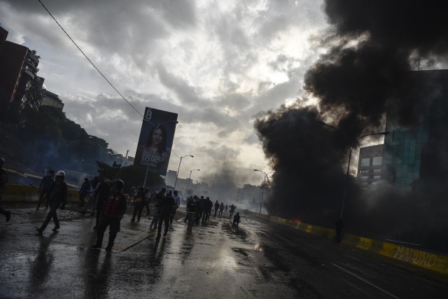 Venezuela'nın başkenti Caracas'ta hükümet karşıtı gösteriler devam ediyor. Caracas'ta toplanan göstericiler bir otoyolu trafiğe kapattı. Göstericileri dağıtmaya çalışan polis ve protestocular arasında yaşanan arbede sırasında polis, taşkınlık yapan göstericilere göz yaşartıcı gaz ve tomalarla müdahale etti.