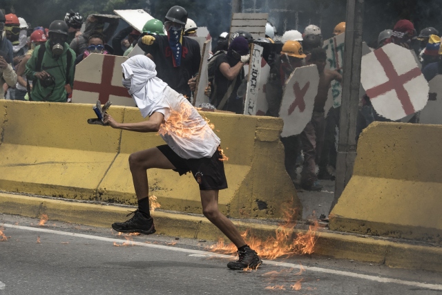 Venezuela Devlet Başkanı Nicolas Maduro'nun, anayasanın yeniden yazılması için bir halk meclisinin toplanmasını içeren kararnameyi imzalamasının ardından ülkede hükümet karşıtı gösteriler devam ediyor. Başkent Caracas'ta gösteri düzenleyen bazı protestocular ve olaylara müdahale etmek isteyen polisler arasında arbede yaşandı. Polis ekiplerine taş ve molotof kokteyli fırlatan göstericileri polis göz yaşartıcı gaz ile dağıtmaya çalıştı.