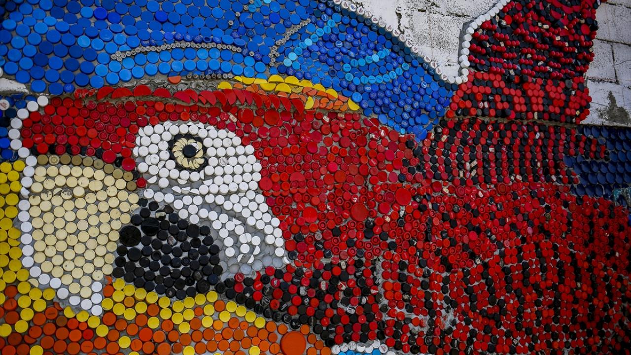 Venezuelalı sanatçı plastik kapaklardan duvar resmi yapıyor