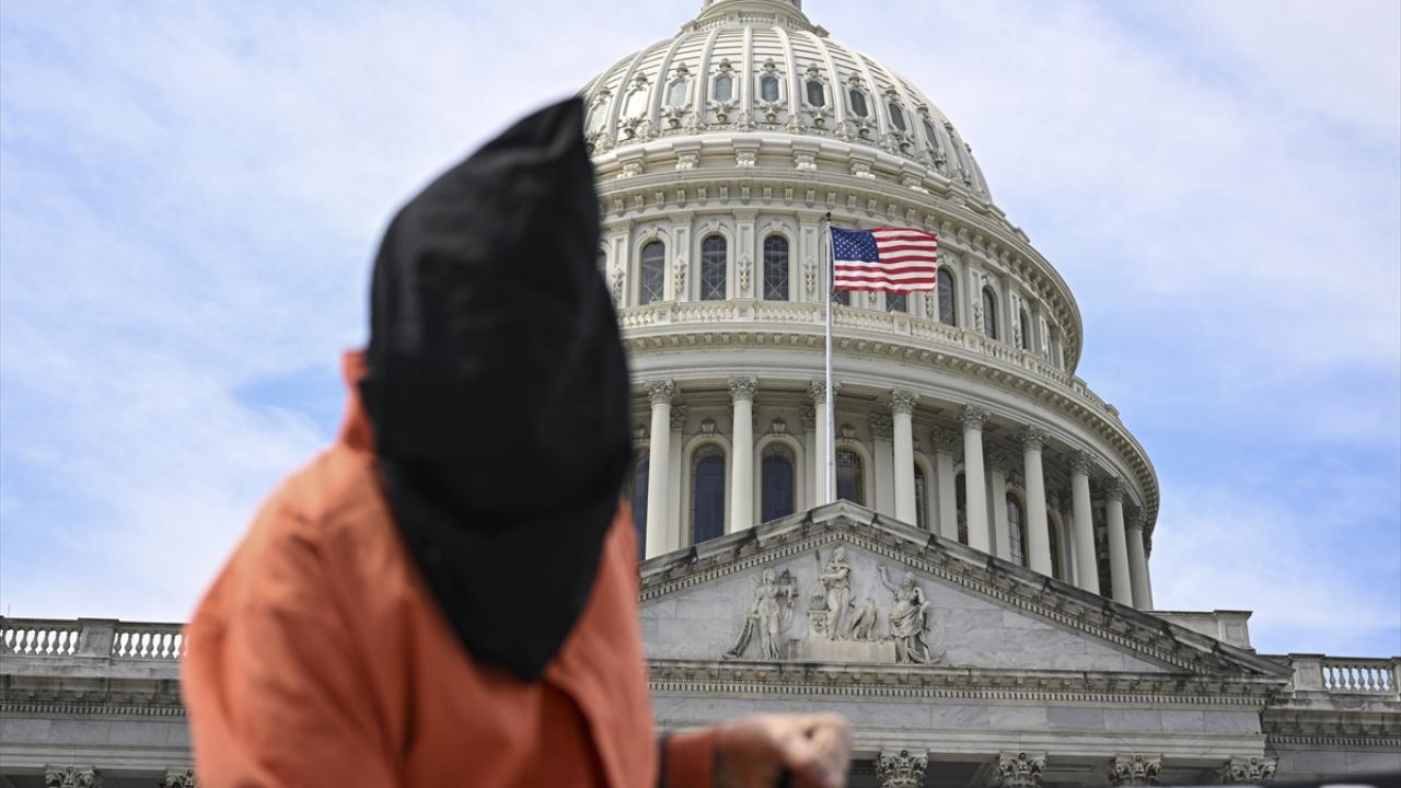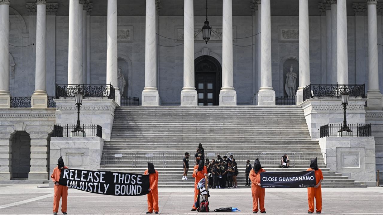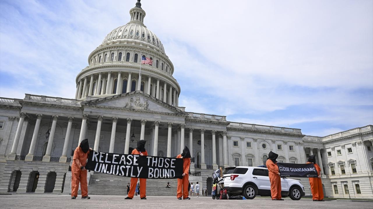 ABD Kongresinin önünde bir grup gösterici sarı tulumlar giyip kafalarına siyah torbalar geçirerek Guantanamo Hapishanesi'nde haksız yere tutuklu bulunanların serbest bırakılmasını ve hapishanenin kapatılmasını istedi.