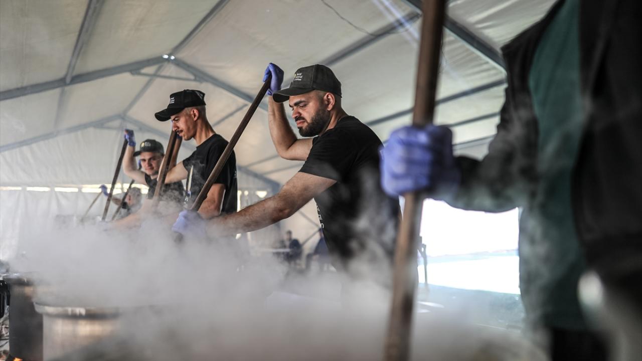 Uluslararası yardım kuruluşu World Central Kitchen, gönüllülerden oluşan ekibiyle, Gazze'nin Refah kentinde günde 5.000'den fazla kişiye bölgeye getirdiği mobil mutfaklarda hazırlanan iftar yemeklerini ulaştırıyor.