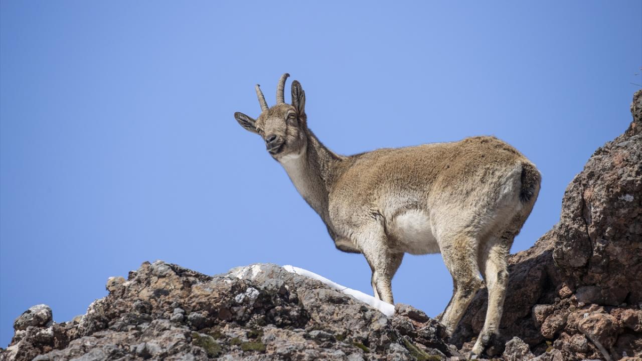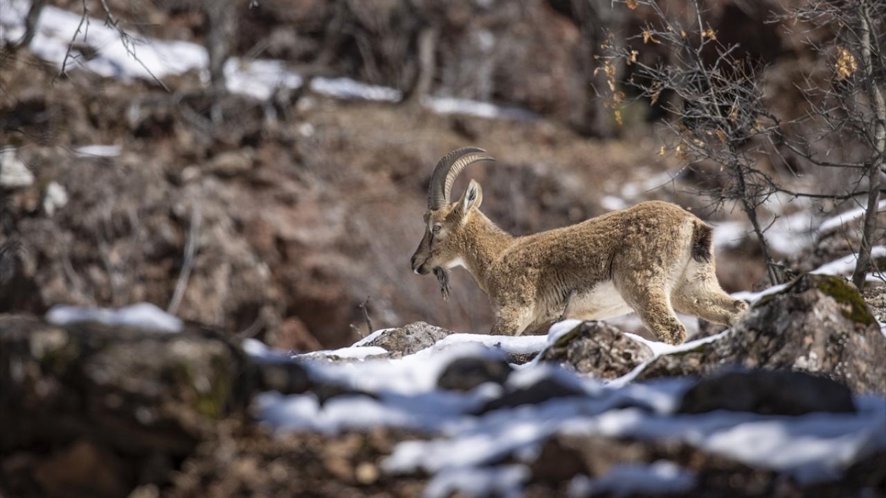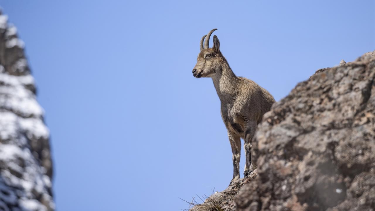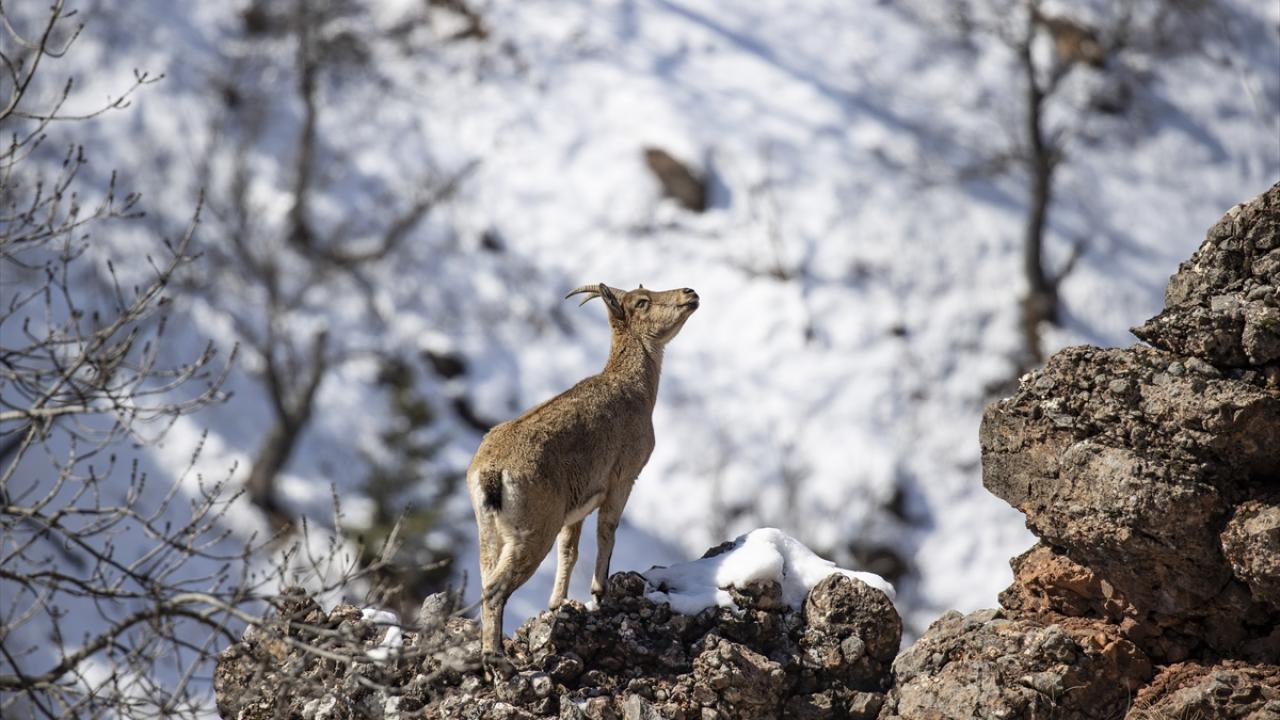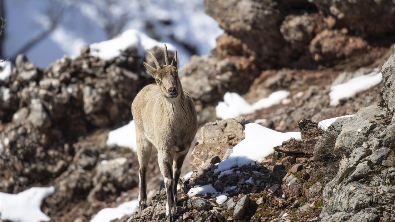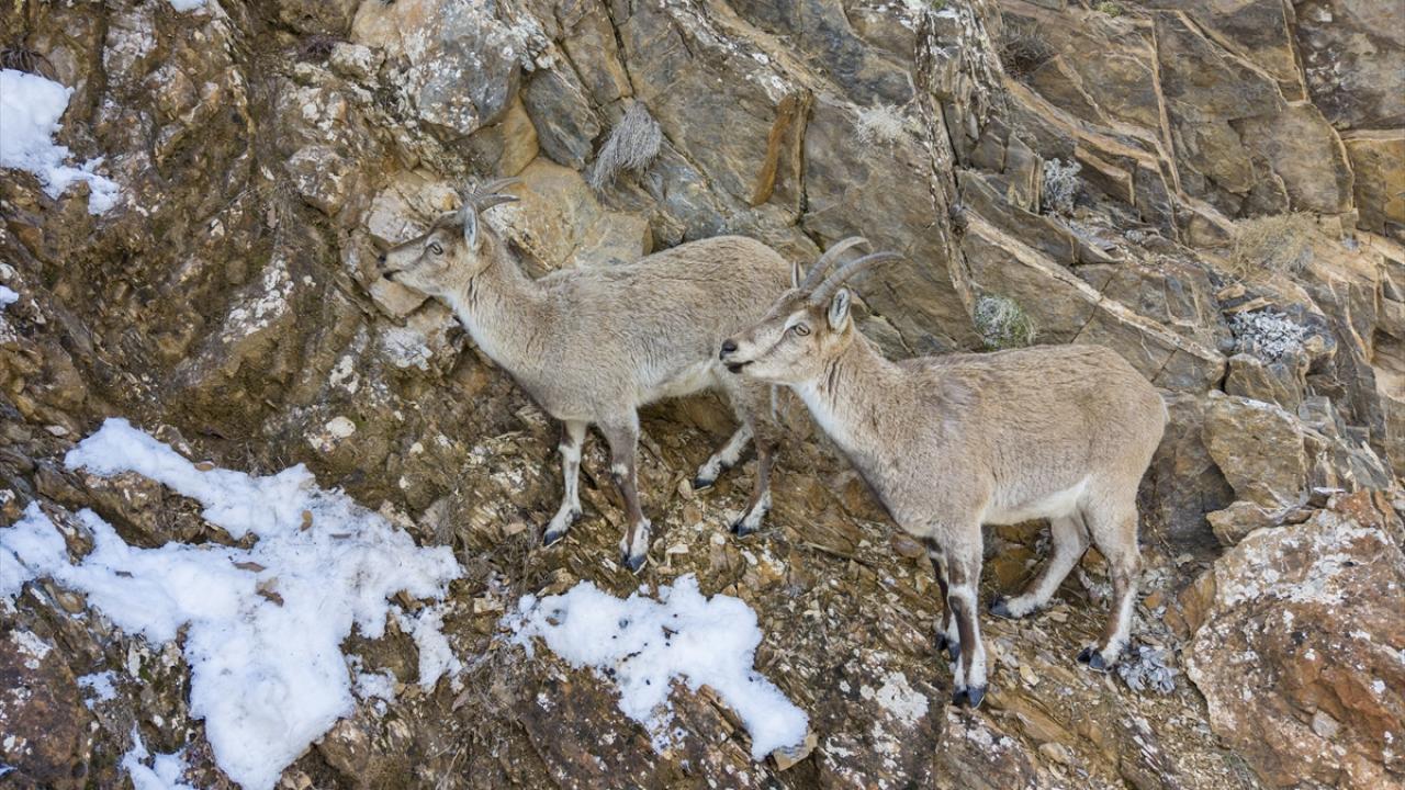 Yaban keçileri Munzur Vadisi'nde yiyecek ararken görüntülendi