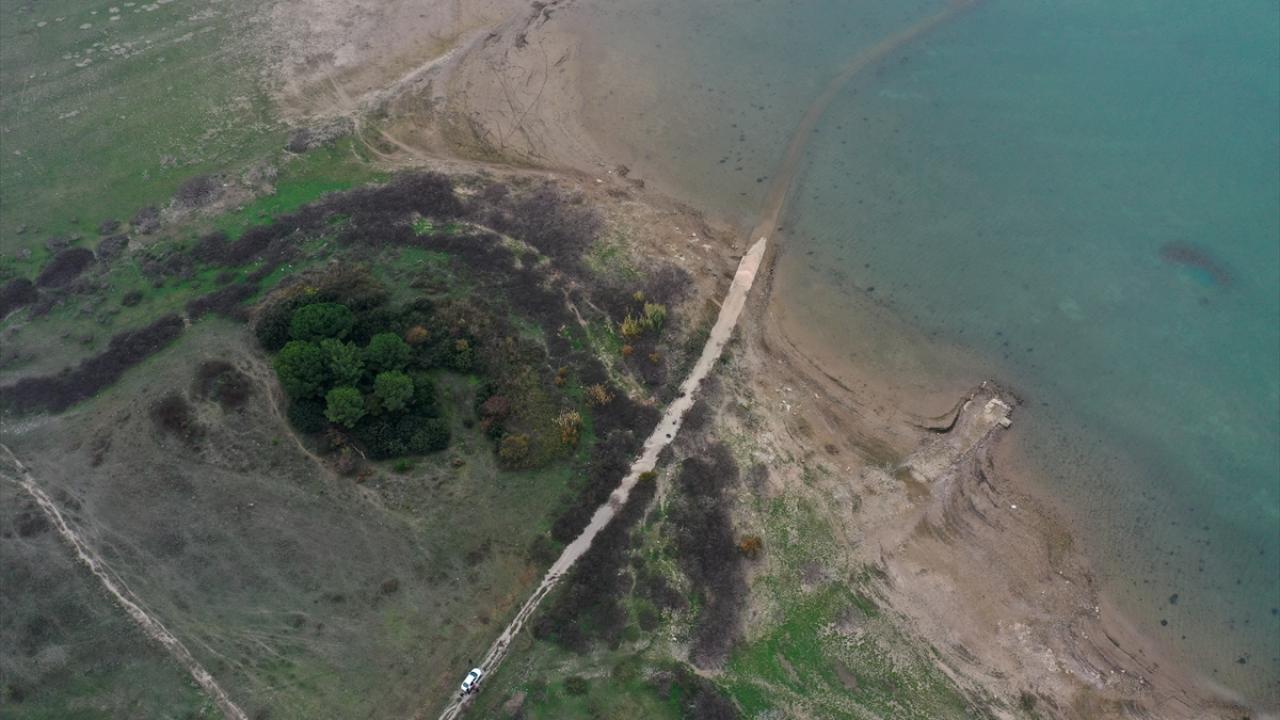 İzmir`deki Tahtalı Barajı gölünde de su seviyesinde azalma görüldü.