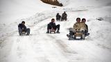 Köyde yaşayan gençler "lastikten kızak" ile karda eğlenmenin yolunu buldu