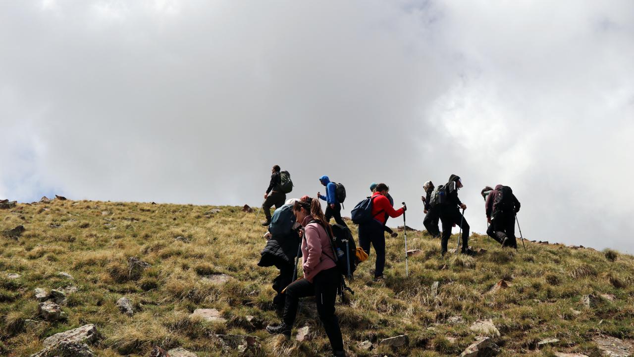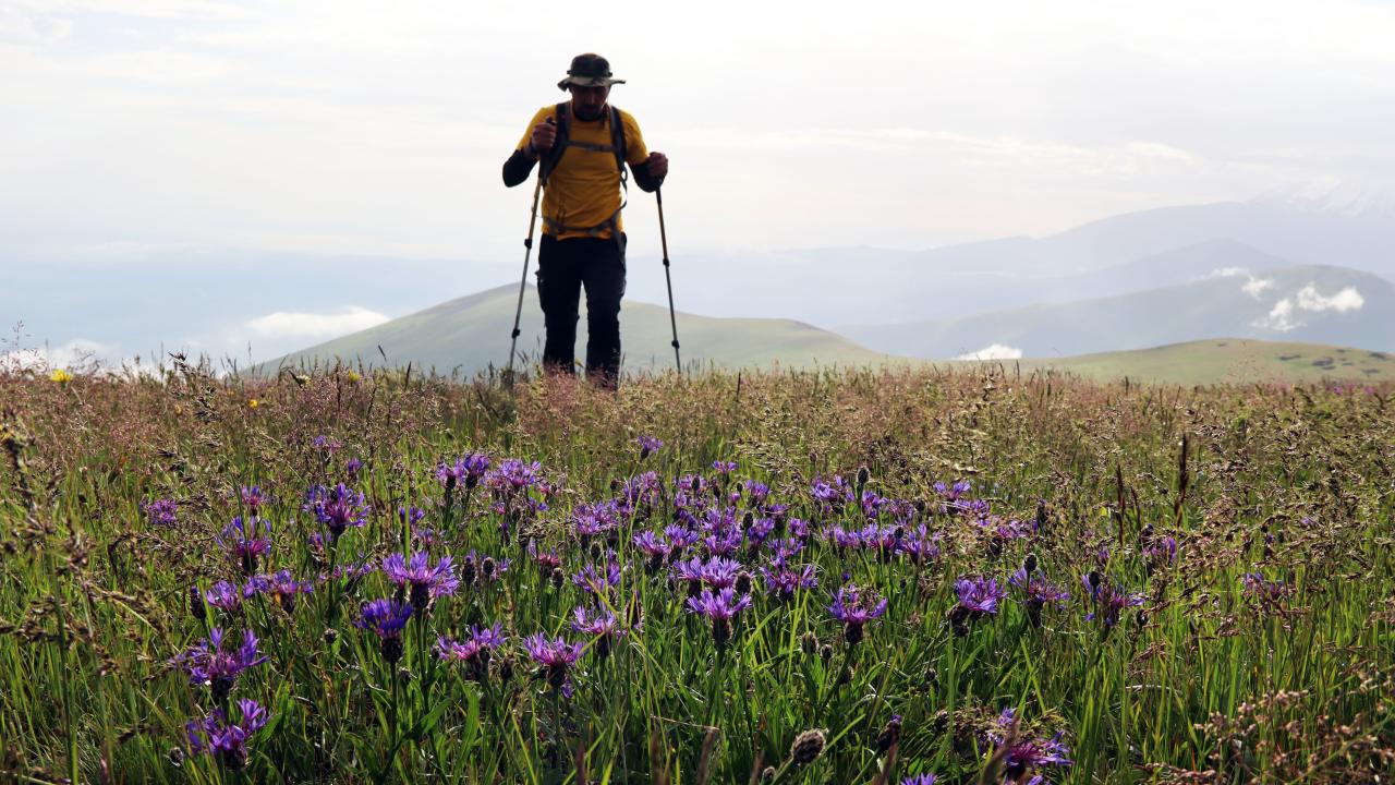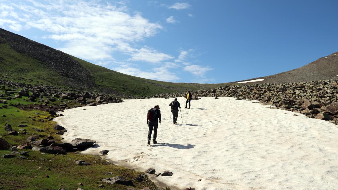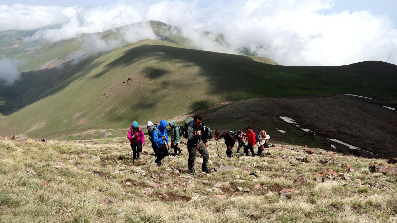 Doğaseverler, Aras Dağları`na gelip hem yaylaları geziyor hem de zirvelere tırmanıyor.