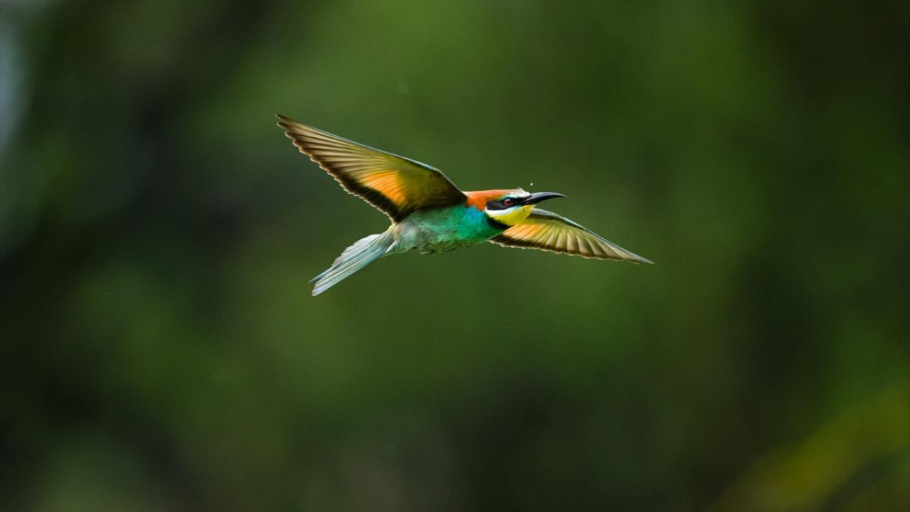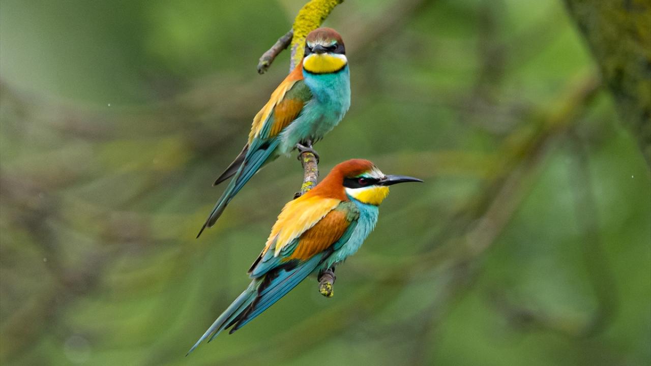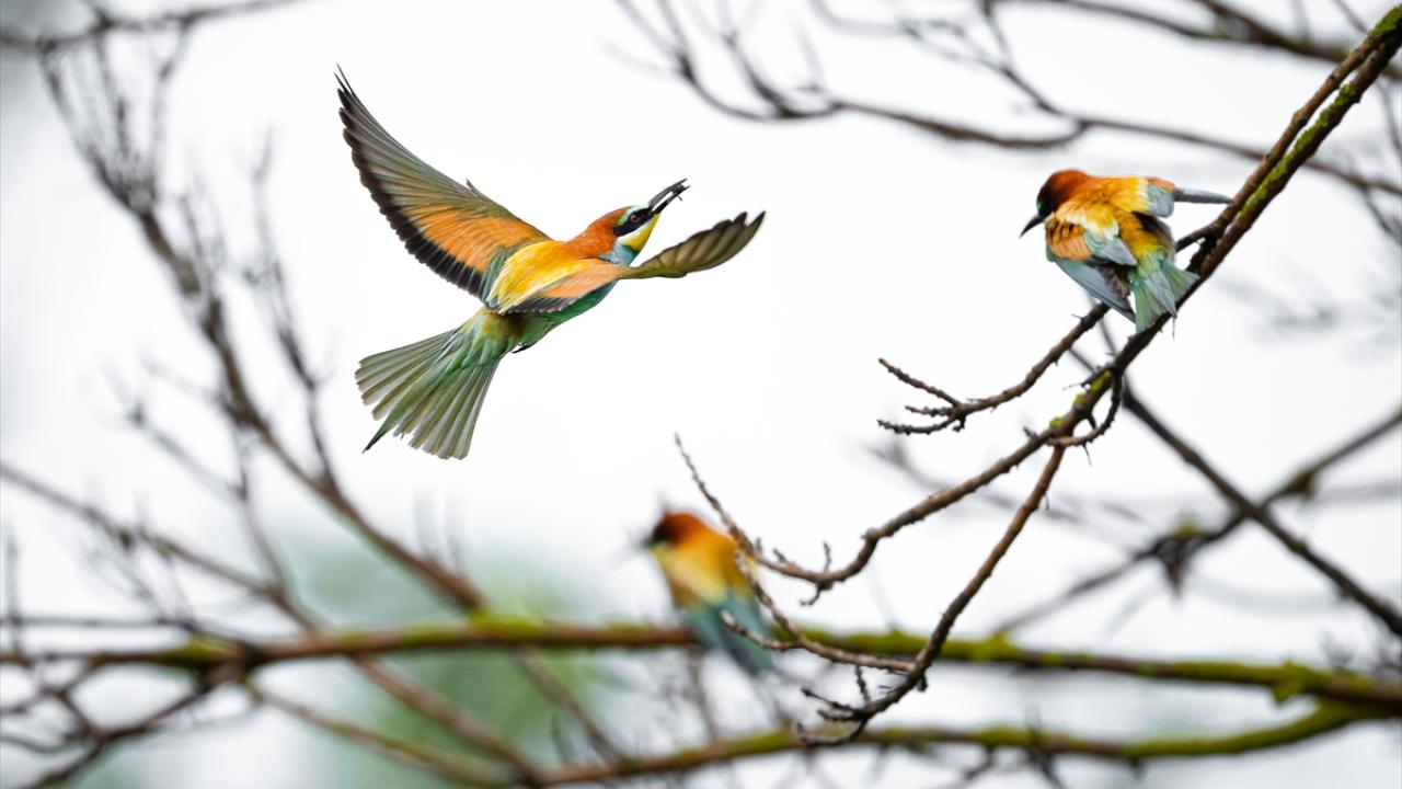 Sivri gagaları, uzun gövdeleri ve uzun kuyruklarıyla dikkat çeken arı kuşları, renkli görüntüleriyle dikkati çekiyor.