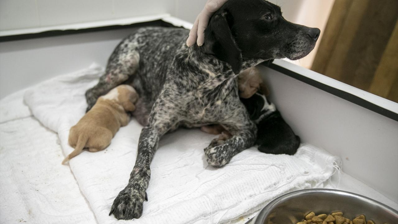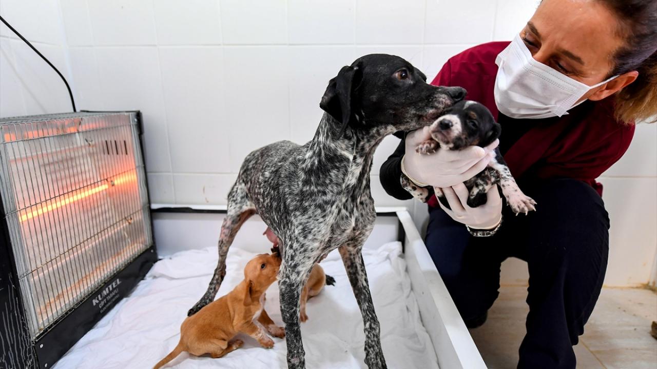 Bölgeye yönlendirilen ekipler, köpek ve yavrularını merkeze getirerek hayvanları tedaviye aldı.