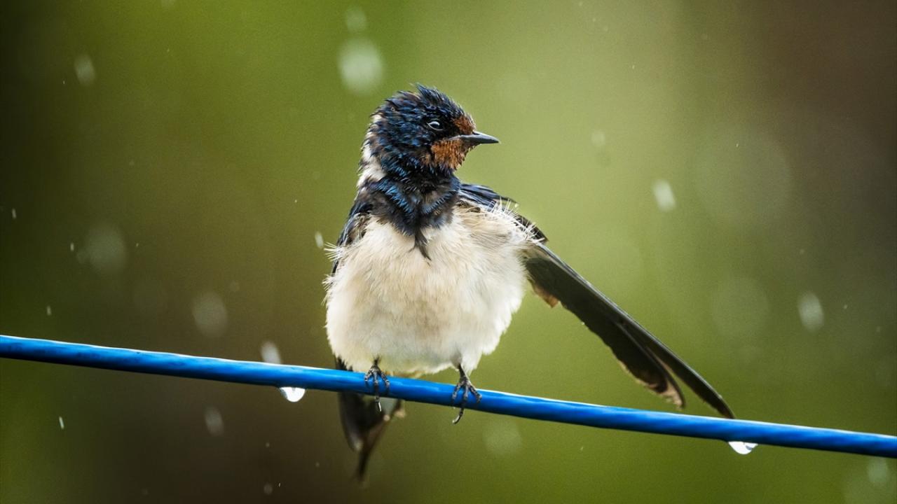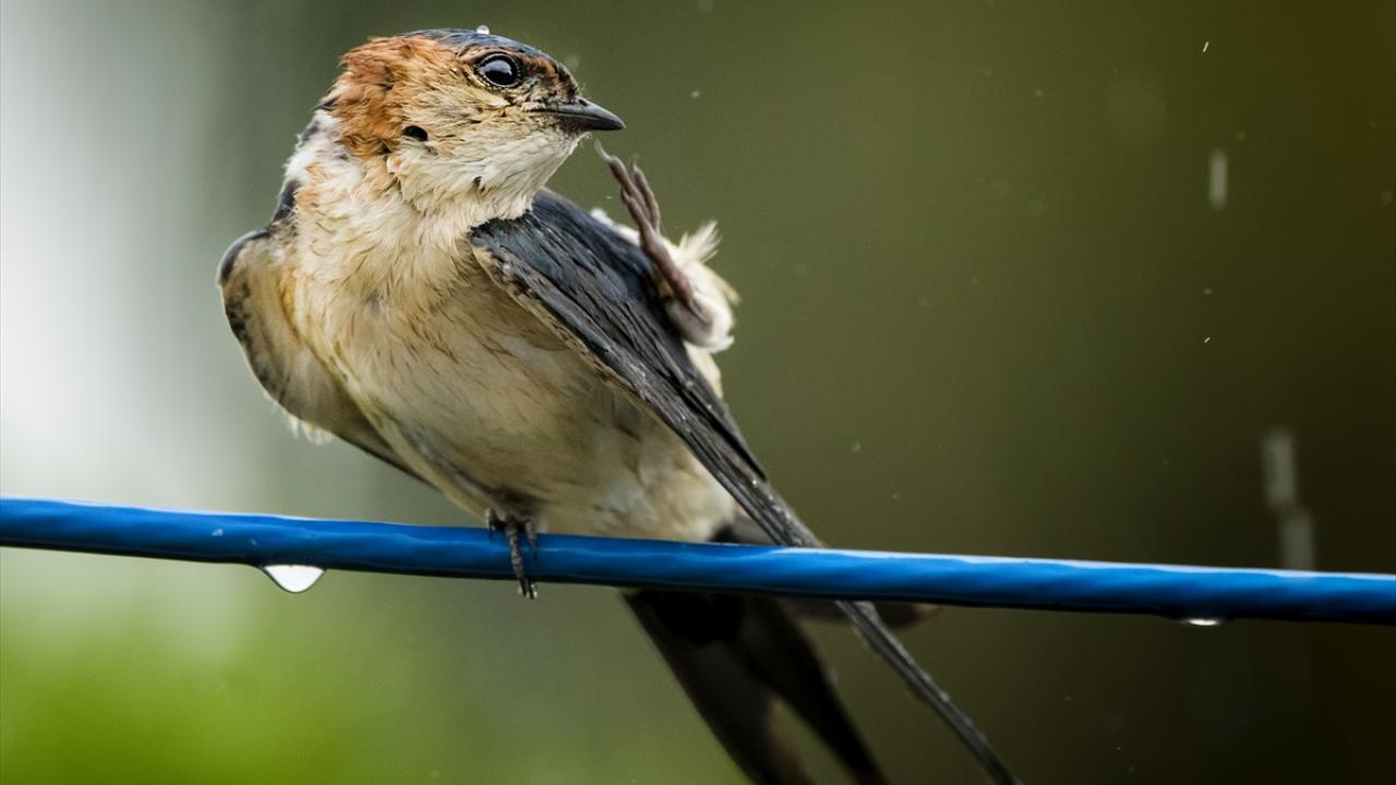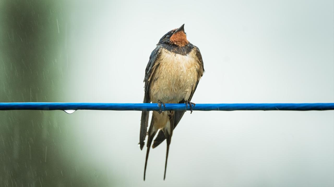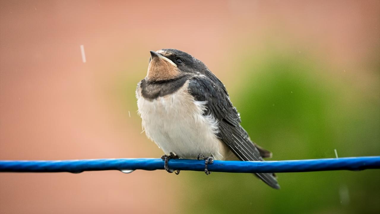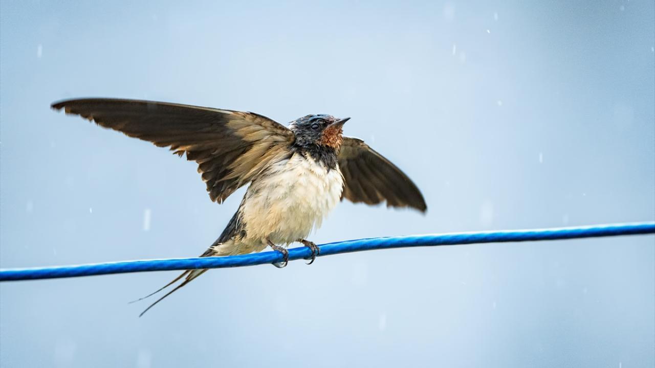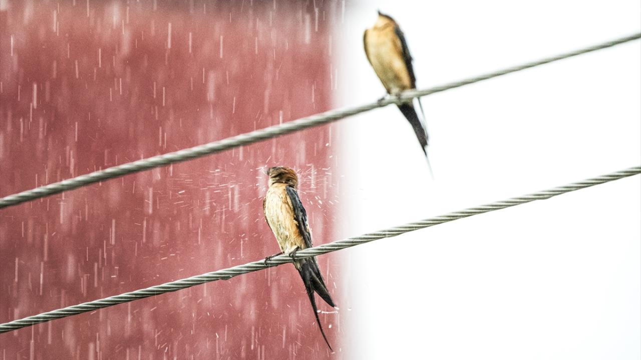 Dünyanın birçok bölgesinde görülebilen göçmen kuşlardan kırlangıçlar, tüylerini, kanatlarını da açarak yağmur suyuyla temizledi.